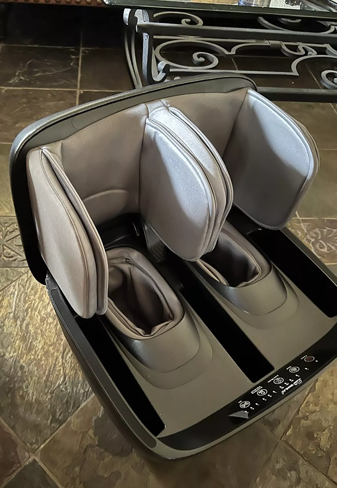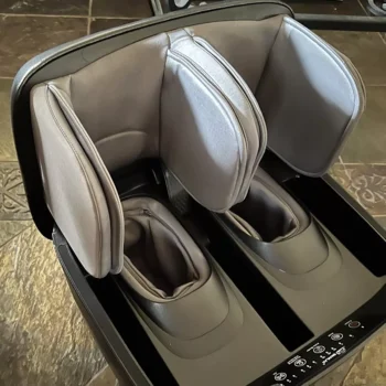 Totally in love with my new foot and calf massager. It's great at giving foot massages and has this air compression feature for the calves that just beats out other models in the same price range. There are three massage types to choose from, and I usually go for the basic one on a 15-minute auto setting. It folds up into this neat ottoman beside my sofa, which is way more aesthetically pleasing than other bulky options. It is a bit heavy, so not the easiest to move around, but the massage quality is unbeatable. There's a bit of noise, but nothing too disruptive. My husband's a fan too, but it might not fit if you have larger feet. Sliding your feet in is necessary, so it might be a challenge if bending is difficult for you.