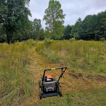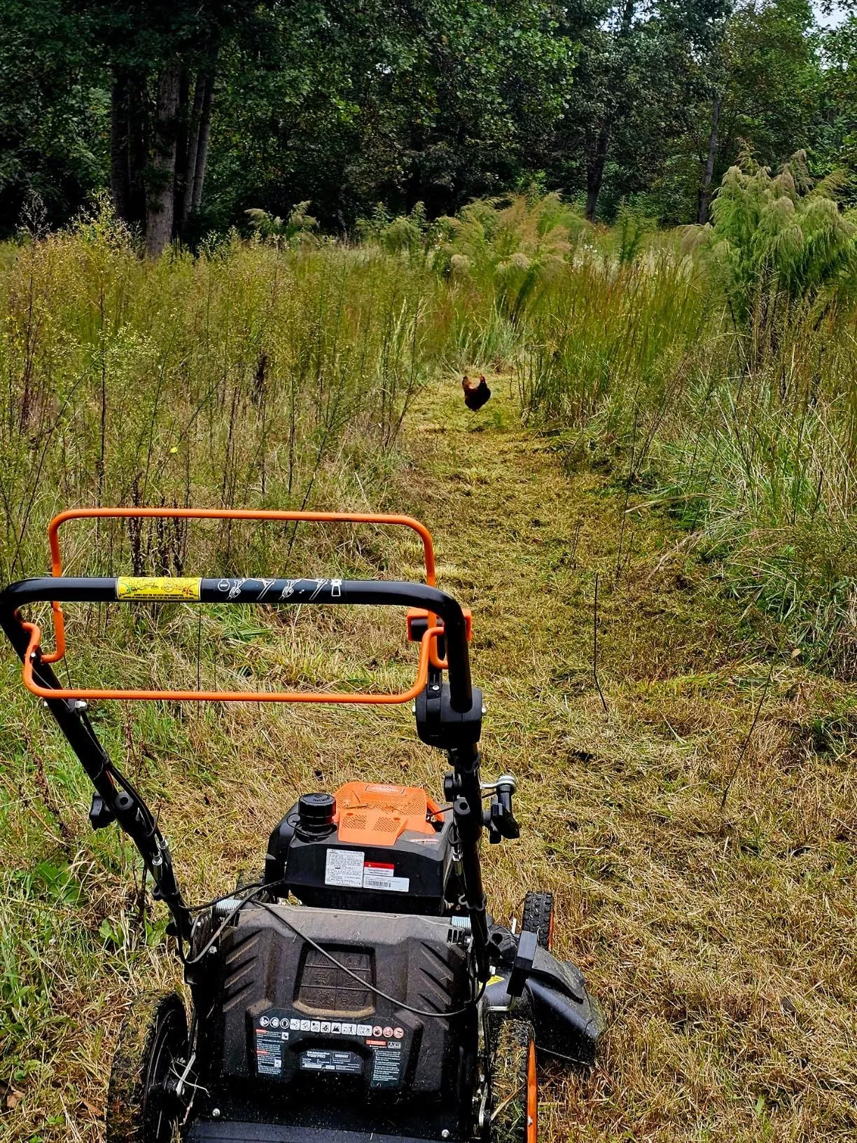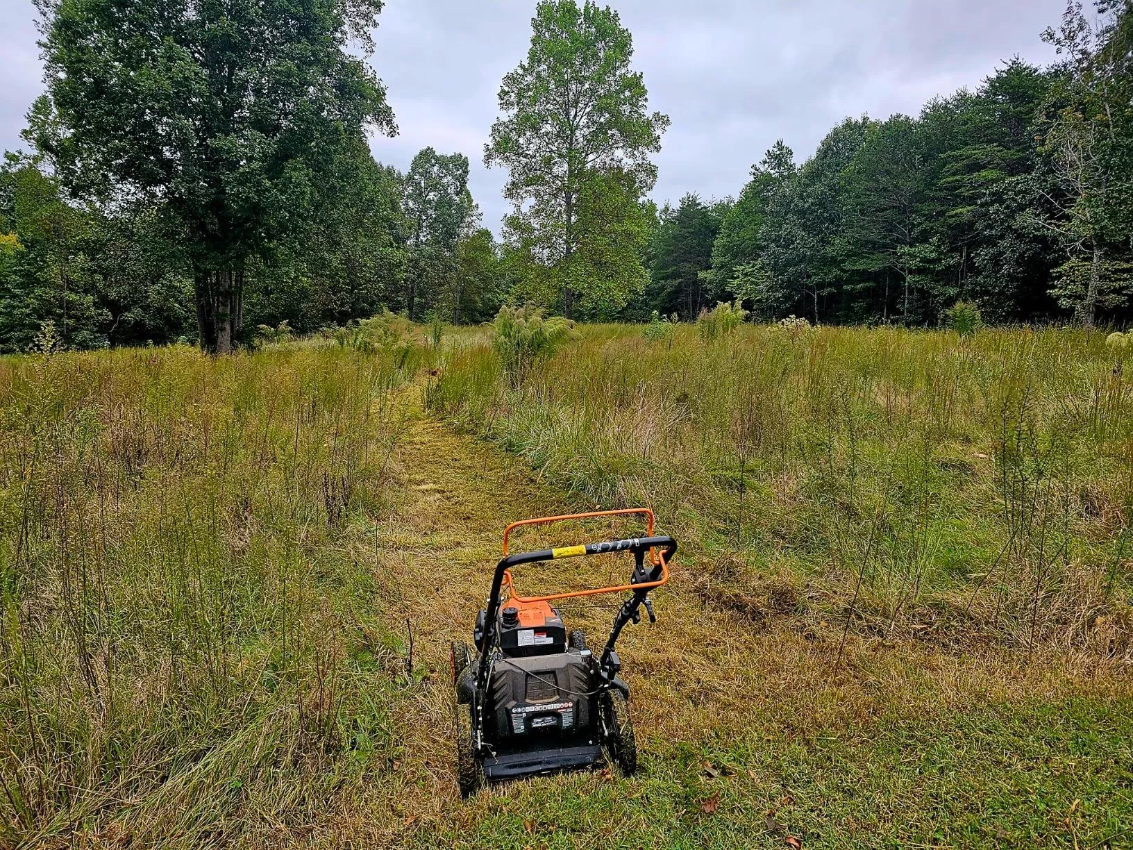 This mower is the BEST ever!! I have 22 acres, 8 of which are not wooded and I don't have a tractor or bush-hog. I pay to have it cleared once a year. But now I wanted to walk my dogs out and decided to clear some paths through the tall grass and weeds with this mower, whom I named Mathilda (after a strong woman). I use her to mow the 1.5 acres of fenced areas without issues, her "turtle speed" is perfect for me (50 years old, 5'1" with plantar foot issues). She'll go a bit faster, but it's not that big of a difference. Today I tried her out in the overgrown field and I am STUNNED!!!! She barreled through it all!!! Super tall grass, weeds, small trees, you name it. I'll never consider another brand again.