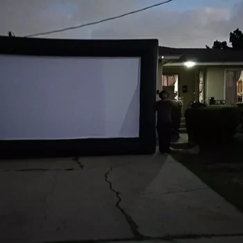 Our 240in Inflatable Projector Screen stands out for its exceptional quality and ease of use. The professional-grade PVC screen delivers a crystal-clear picture, while the robust inflatable frame provides stability even in outdoor settings. Setup is a breeze, taking less than 5 minutes from start to finish, and the screen is just as easy to take down and store away. Plus, the washable blower and included accessories make maintenance simple and hassle-free. Don’t miss out on the chance to create unforgettable outdoor movie experiences. Elevate your entertainment setup with our 240in Inflatable Projector Screen and make every event a memorable one. Order now and get ready to enjoy the ultimate outdoor cinema experience!