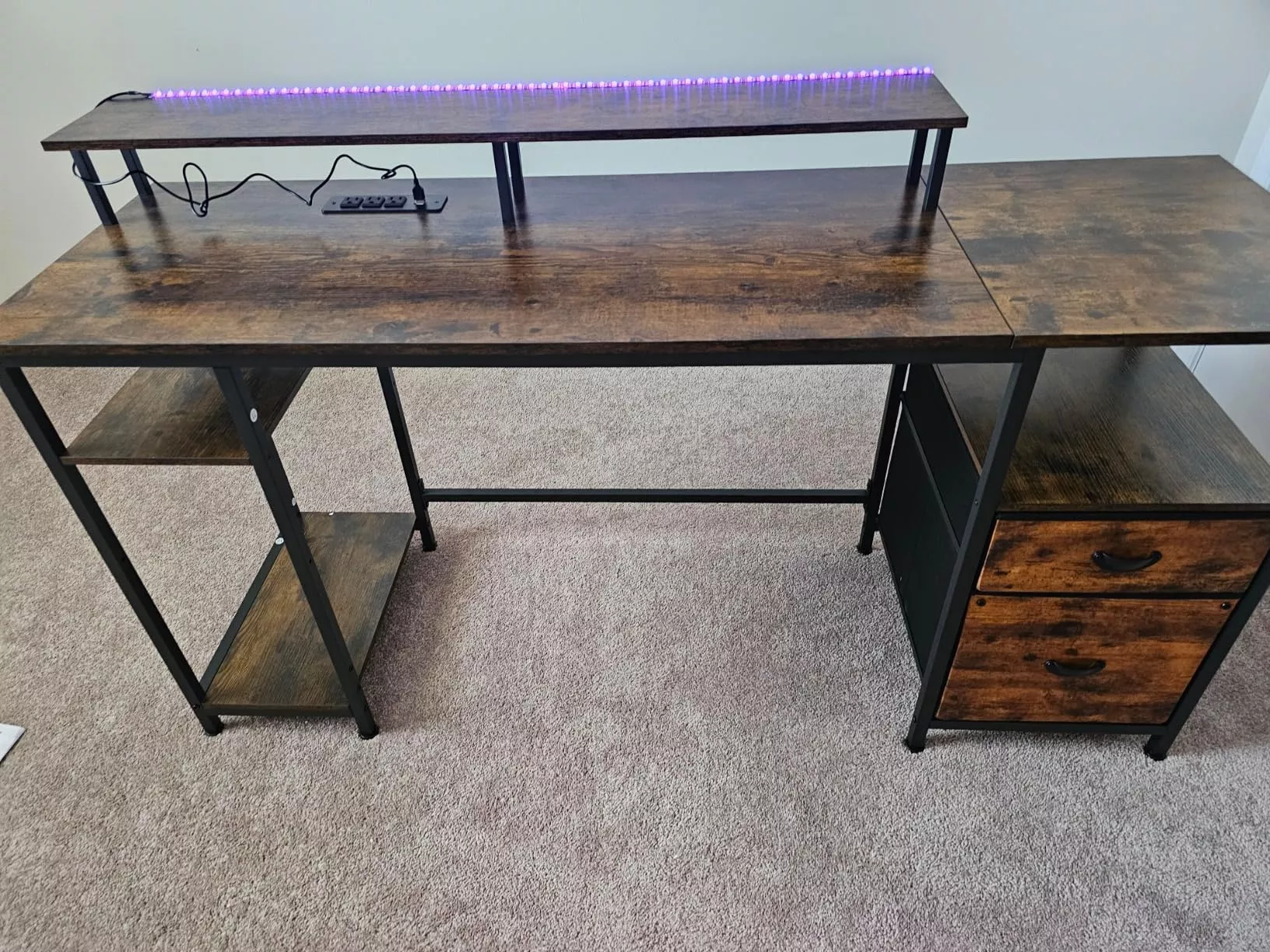 • Expansive Work Area: At 61.3″ in length, this desk comfortably accommodates dual monitors and a printer, ensuring ample space for your work essentials.