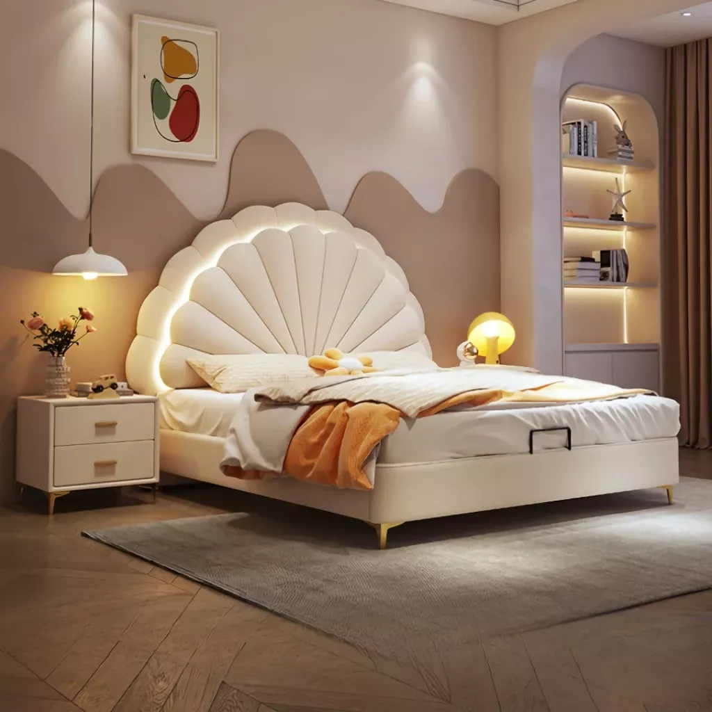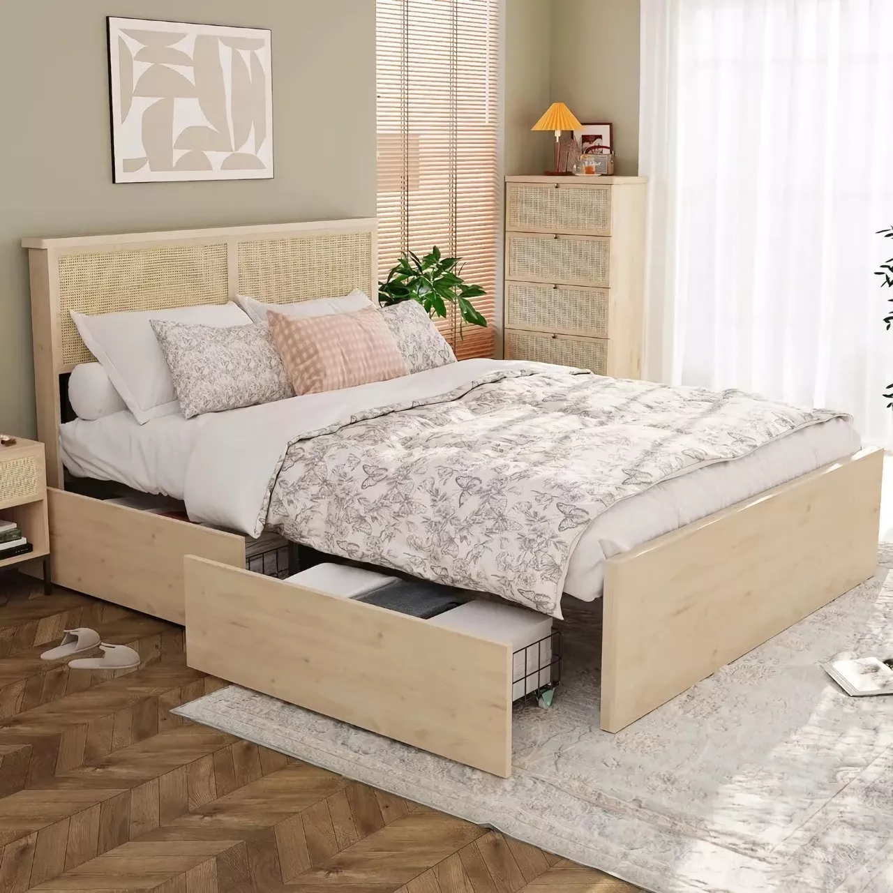 Queen Size Bed with Steamed Bread Backrest and Storage Drawers