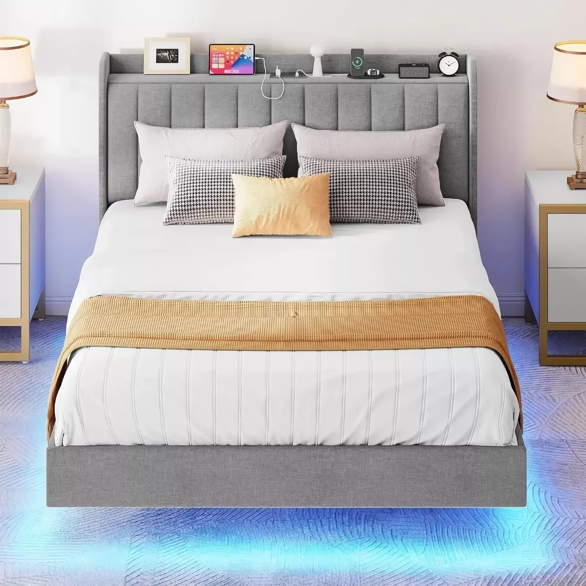 Luxury Queen LED Floating Bed Frame with USB and Type-C Charging Ports