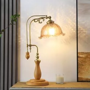 Enhance your home or office with the Classic Vintage Glass & Wood Table Lamp, where traditional design meets modern functionality. This exquisite lamp features a rich brown wood base, complemented by a delicately frosted glass shade that directs light downward, creating a warm, inviting atmosphere. Perfect for a bedside, study, or coffee table, this lamp adds a touch of vintage charm to any setting.