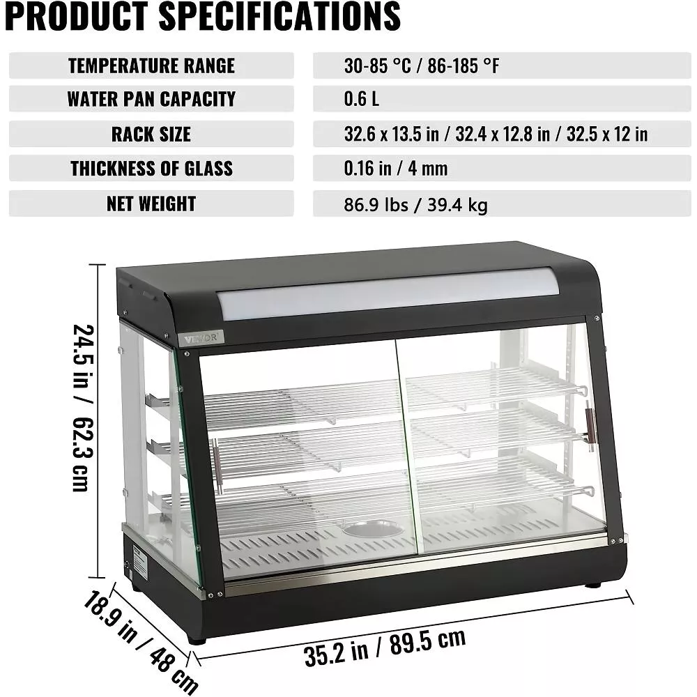 This Commercial Food Warmer Display is ideal for use in a wide range of settings, including canteens, bakeries, cafés, fast-food restaurants, and convenience stores. It’s perfect for holding and displaying pizzas, tarts, fried chicken, and burgers, ensuring they remain fresh and delicious for your customers. The combination of 3D convection heating and a water tray ensures your food never tastes dry or overcooked, maintaining the perfect balance of moisture and flavor.
