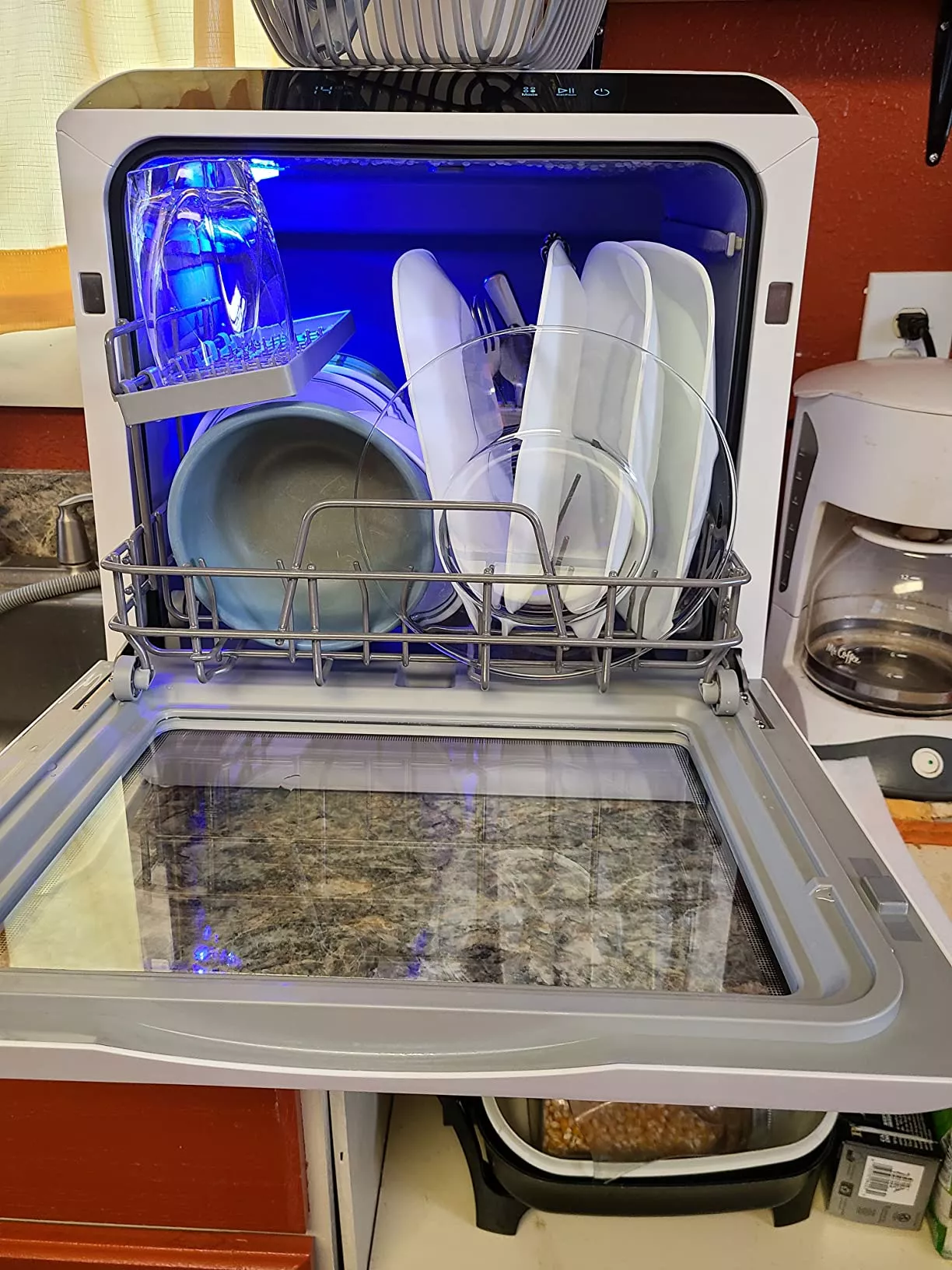 After moving into this older, smaller apartment, the kitchen setup started driving me nuts. The sink was this shallow little thing without any division, and the faucet was so low, it felt like a comedy sketch trying to wash anything larger than a mug without banging my hands or the dishes. Honestly, doing the dishes became the most dreaded part of my day. So, I hit the internet, diving deep into the world of portable and countertop dishwashers. I needed something that wouldn’t eat up the precious little counter space I had but still tackled the mountain of dishes a day’s meals left behind. That’s when I stumbled upon this gem. The thing that really drew me in was its design – it had this clear glass front which I thought was pretty neat because you could see your dishes getting cleaned, and it came with a manual fill tank, meaning I didn’t need to mess with my plumbing to get it running. But what sealed the deal for me was its size; it was like it was made for the tiny bit of counter I had free next to my sink. Now, I've been using it for a solid three months. Here's the rundown: For a solo dweller like me, it's pretty much perfect. It fits all the dishes I use throughout the day – breakfast, lunch, dinner, and the several cups of coffee that fuel my existence. The only time I find myself running it more than once a day is when I've had friends over, which isn’t all that often. I guess a larger family might find it a bit on the small side for their needs, but for anyone living alone or with just one roommate, I’d say it’s just the right size. And so far, it's been smooth sailing – no issues at all. Filling it up is a breeze, and I’ve gotten into this routine of setting it before bed, so I wake up to clean and dry dishes every morning. It’s pretty convenient. The one thing that might throw you off at first is the detergent situation. There isn't a typical dispenser. Instead, there's a spot on the door where you drop a detergent pod. Initially, I was a bit skeptical about how well this would work, but it turns out fine. The pods dissolve slowly, giving the dishes a good soak before the main wash kicks in. Another thing I noticed was the fan noise. It was a bit louder than I expected, which caught me off guard in my small apartment. But honestly, after a few days, it just became another background noise, and now I hardly notice it. To sum it up, getting this dishwasher was one of the best decisions I’ve made for my kitchen. It’s saved me so much time and hassle, not to mention my dishes have never been cleaner. No more dreading the post-dinner cleanup. Plus, there’s something satisfying about seeing your dishes get sparkling clean through that clear door. If you’re on the fence because of space or hookup concerns, I’d say go for it. This little machine has made a big difference in my daily routine.