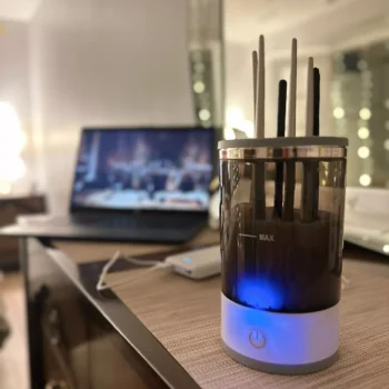 Unlike other cleaners, our machine combines efficiency with care. It protects the delicate bristles of your brushes while ensuring they are thoroughly cleaned and dried, ready for immediate use. The sleek design and ease of operation make it a must-have gadget for anyone serious about their makeup routine.