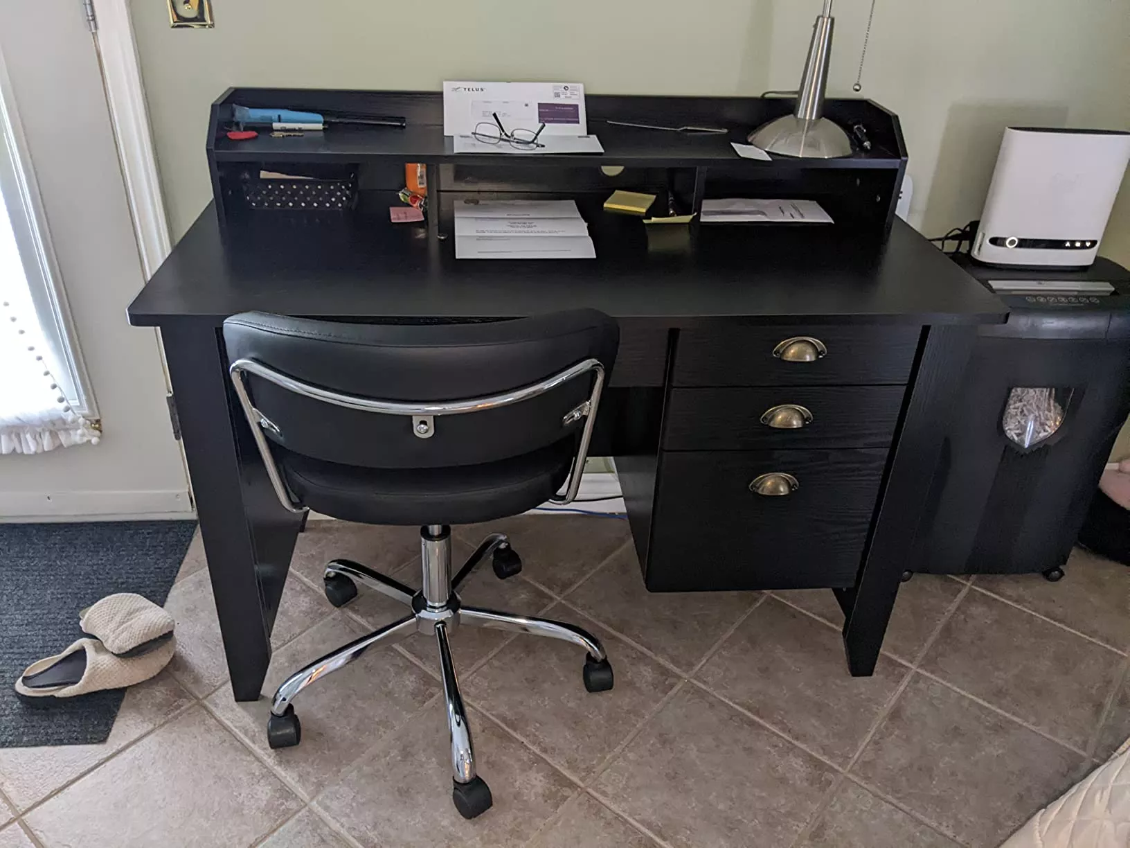 This desk is truly a standout piece! I was on the hunt something that could blend seamlessly into my vintage inspired workspace, yet provide all the modern functionality one would expect from an office desk. And boy, did this deliver! The four-color blend adds such a unique touch and elevates entire room's aesthetic. Plus, it offers ample storage with its shelves and drawers - perfect for keeping my work essentials organized and within reach. It’s not a desk; it has become an integral part of my daily routine making every task more enjoyable.