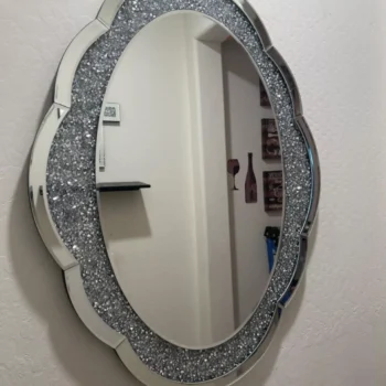 The Elegant Cloud-Shaped Silver Wall Mirror is not just a piece of decor; it’s a statement of style. The crushed diamonds embedded in the mirror catch the light beautifully, adding a touch of sparkle to any room. This mirror offers a clear, distortion-free reflection, thanks to its premium silver glass. The solid MDF backing ensures the mirror remains stable and secure on your wall, providing long-lasting durability.