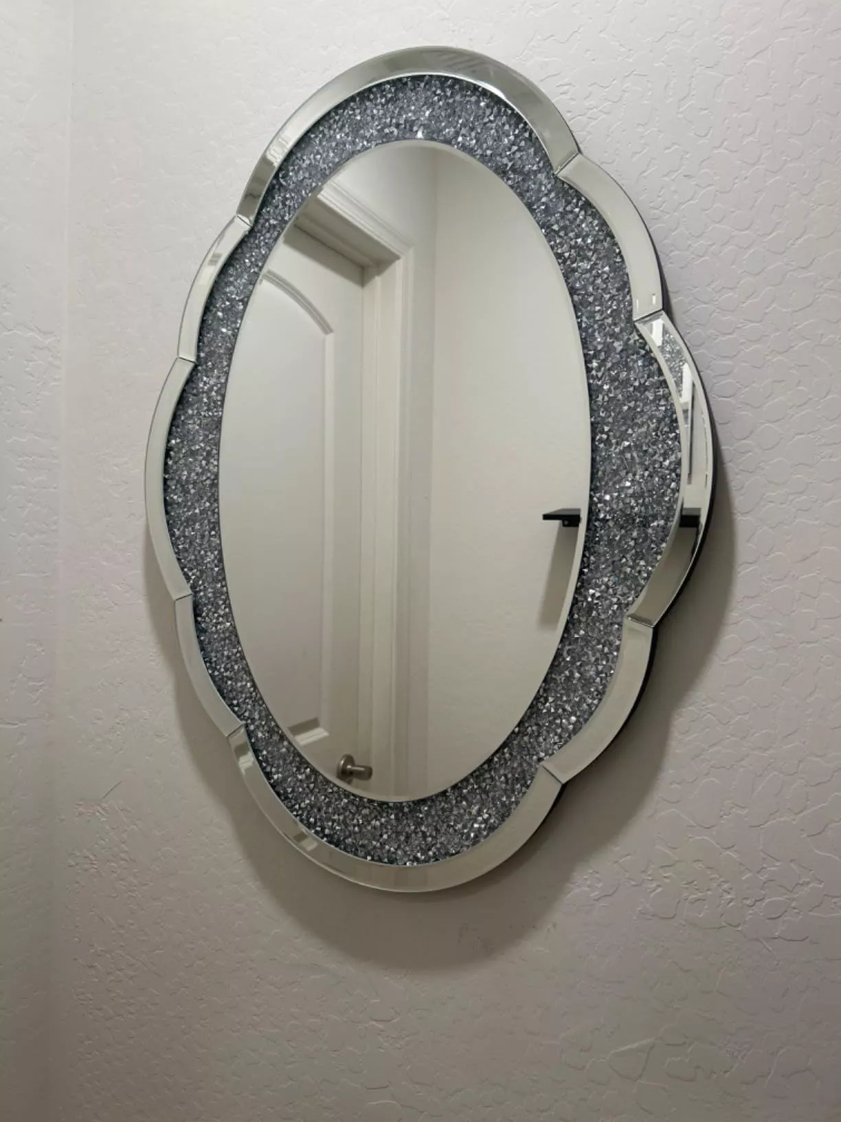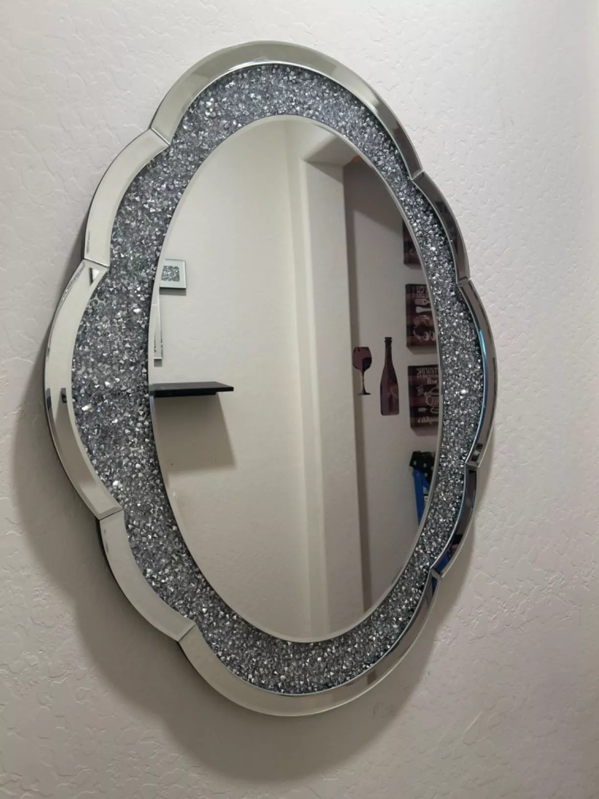This elegant mirror is versatile and can be used in various settings. Hang it in your hallway to make a grand first impression, place it in your bedroom for a touch of glamour, or use it in your bathroom to add a luxurious feel. The cloud shape and crushed diamond design make it a perfect fit for contemporary and modern interiors.