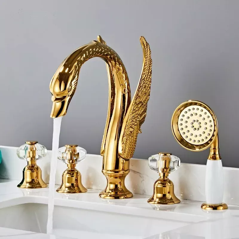 Elevate the look and functionality of your bathroom with the stunning Elegant Gold Swan Bathtub Faucet Set. Designed with meticulous attention to detail, this faucet set brings a touch of luxury and sophistication to any bathroom space. Its contemporary design, combined with high-quality materials, makes it a perfect choice for those looking to create a spa-like experience at home.