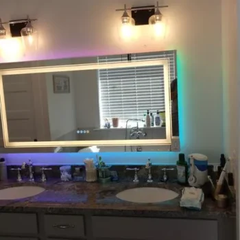 Elevate your bathroom’s ambiance with our LED Vanity Mirror, a perfect blend of elegance and functionality. This mirror is not just a reflection of you but a showcase of your taste for the finer things in life. Its modern design, complemented by RGB backlighting and dimmable features, brings a touch of luxury to your daily routine. Whether you’re getting ready for the day or unwinding in the evening, this mirror provides the perfect lighting to suit your mood and needs.