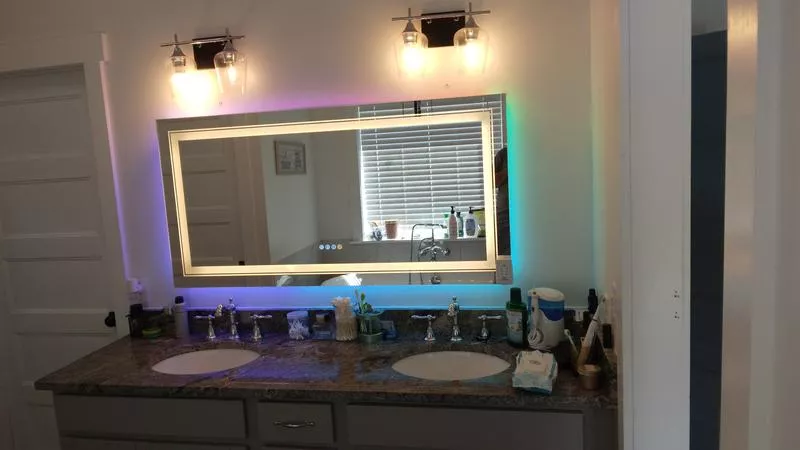 From the moment I laid eyes on this LED vanity mirror, I knew my bathroom was about to undergo a transformation reminiscent of a high-end spa retreat. The installation process was unbelievably straightforward, a fact that surprised and delighted me in equal measure. Guided by clear instructions, I was able to set it up without the need for professional help, a testament to its user-friendly design. But what truly sets this mirror apart is its dual lighting feature, incorporating both RGB backlighting and front lighting. This ingenious combination ensures that every corner of my face is illuminated without shadows, making my daily grooming rituals a pleasure rather than a chore. The ability to adjust the brightness with just a simple touch adds a layer of sophistication and convenience that I never knew I needed. Whether I'm applying makeup or simply admiring my reflection, the ambiance created by the adjustable lighting is nothing short of magical. The anti-fog feature, however, is the cherry on top. Gone are the days of waiting for the mirror to clear after a hot shower. Now, I can step out and immediately continue with my routine, uninterrupted. It's not just a mirror; it's a game-changer that enhances the quality of my daily life. In summary, this LED vanity mirror is not merely a tool for reflection. It's an upgrade to my bathroom that brings joy and convenience to my everyday routine. Its blend of aesthetic appeal, technological innovation, and practical functionality makes it an indispensable part of my home.