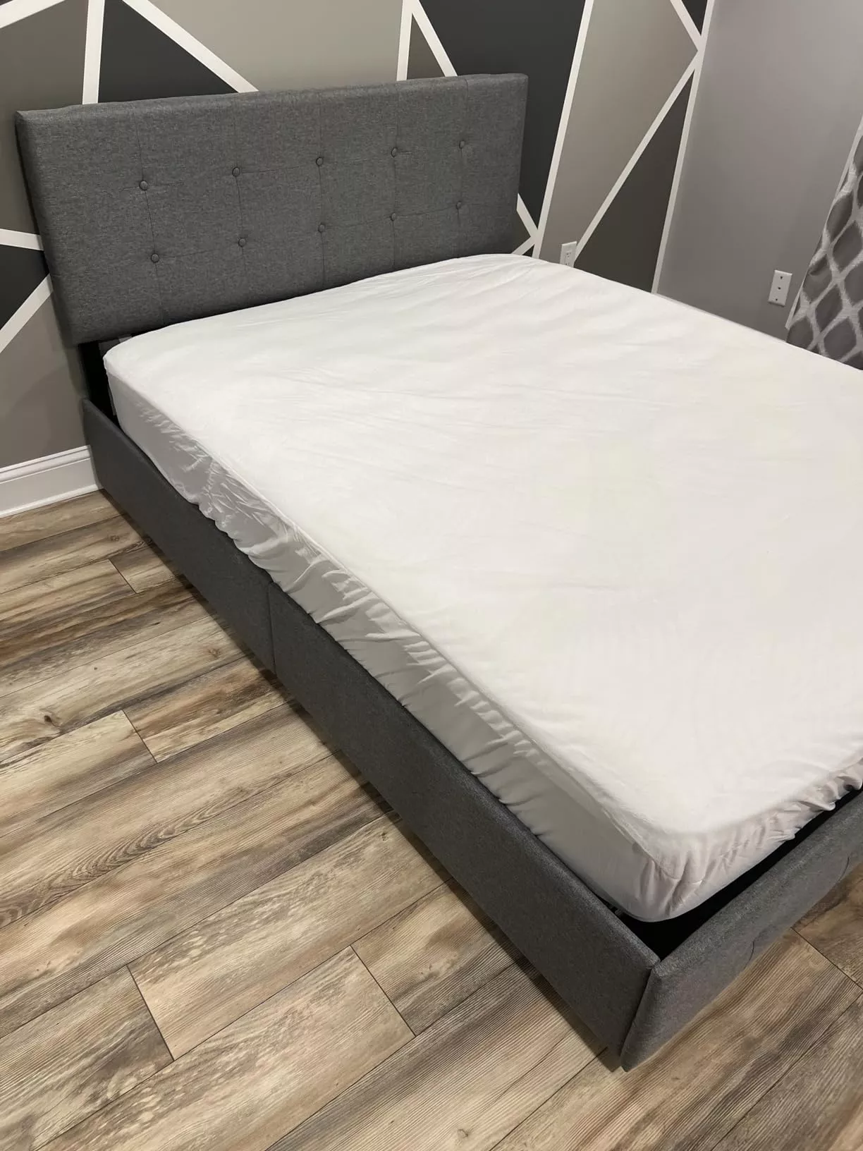 Introducing our Full-Size Upholstered Bed Frame, a perfect fusion of modern elegance and practical design. This luxurious bed frame is not just a piece of furniture; it’s a statement of style and convenience for your bedroom. Whether for a cozy apartment or a spacious home, this bed frame transforms your sleeping space into a haven of comfort and organization.
