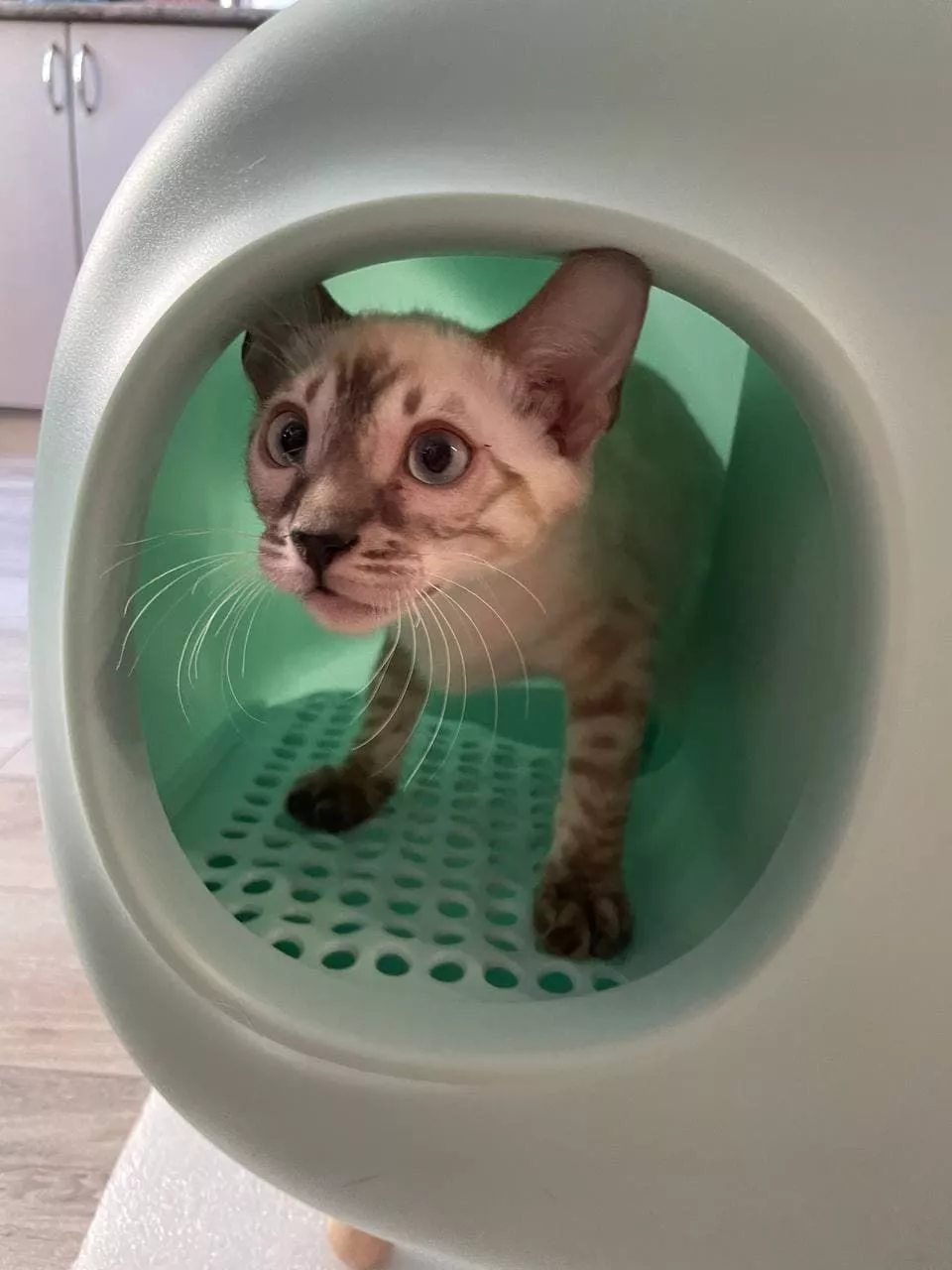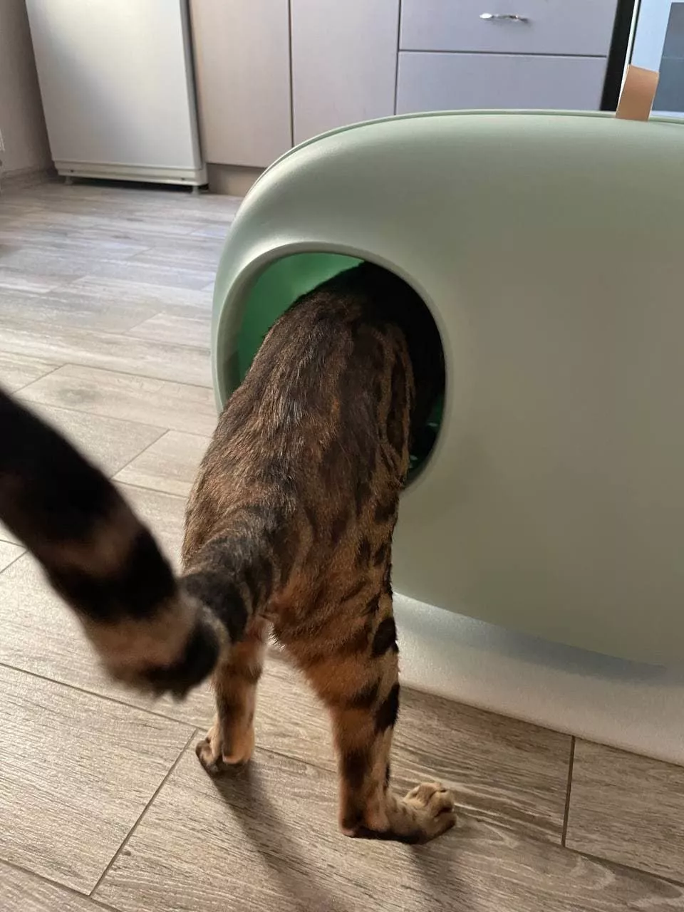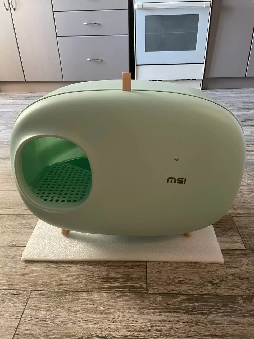 This mochi-shaped litter box is the cutest thing! Every time I see it, I can't help gush over how adorable it looks. It's like they've taken the charm of a squishy mochi and turned it into something practical for our feline friends. My cat took to this litter box instantly. Didn’t even bat an eye before making himself at home in there. And that’s saying something! Not only does my kitty love this new addition to his life but so do I. Why you ask? Simple - because this little gem has some serious odor-containing powers! We all know that dealing with pet waste isn't exactly a walk in the park and anything that makes that job easier gets two thumbs up from me. This nifty litter box manages to keep those unpleasant smells locked away where they belong – inside the box and not wafting through my living room when guests come over. This means no more awkward conversations or frantic air freshener sprays before company arrives. Just remember though: while its appearance might make you crave some sweet Japanese treats don’t be fooled; despite its dessert-like shape...this ain't edible folks!