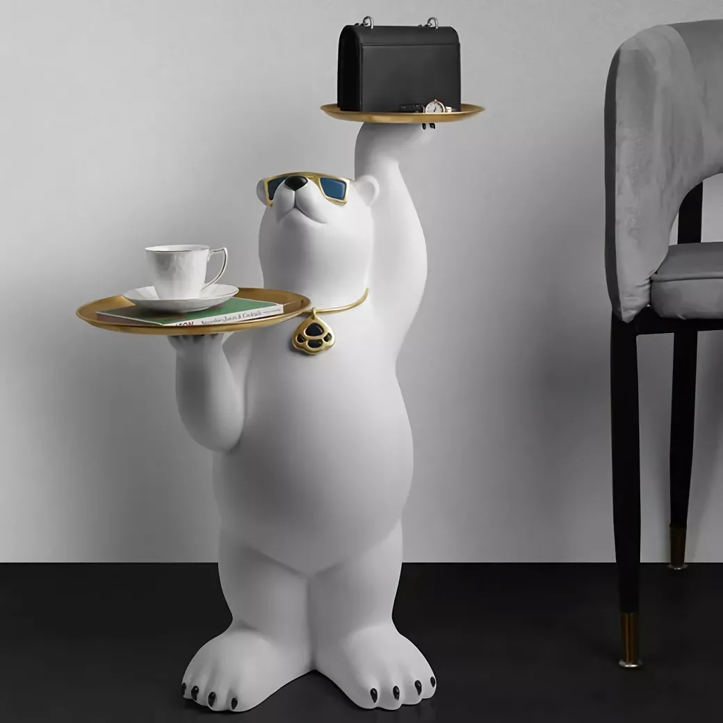 Luxurious White Bear Tray Sculpture