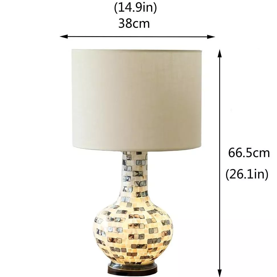 Our meticulously crafted desk lamp features a stunning fritillaria shell mosaic base complemented by a soft fabric shade that diffuses light beautifully. Equipped with energy-efficient LED bulbs, this lamp is not just beautiful but also economical and environmentally friendly. The robust iron finish ensures durability, while the advanced certifications (CCC, CE, FCC, and more) guarantee safety and quality.
