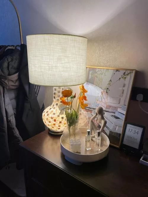 If there were ever a love-at-first-sight moment with furniture accessories, then mine would be when I first saw the Luxurious Handmade Mosaic LED Desk Lamp online. Once delivered and set-up on my study desk at home, I knew immediately that I had made the right choice – even better than expected! Every detail showcases expert craftsmanship; from each tiny piece of glass meticulously arranged into intricate mosaics to its sturdy base providing excellent stability despite its delicate appearance. The LED lights emit a subtle, soothing glow that's perfect for late-night reading sessions. This lamp is not just a source of light but also an art piece that brings a touch of elegance and romance to my workspace. I am beyond pleased with this purchase.