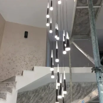 Transform your home’s vertical space into a cascading display of illumination with our Luxury LED Staircase Chandelier. Ideal for living rooms, grand staircases, or the lofty expanses of a duplex or villa, this pendant lamp is designed not just to light up a room, but to enhance its overall elegance. Crafted with meticulous attention to detail, the chandelier features a sleek combination of iron, aluminum, and acrylic to create a modern centerpiece that’s both stunning and functional.