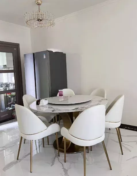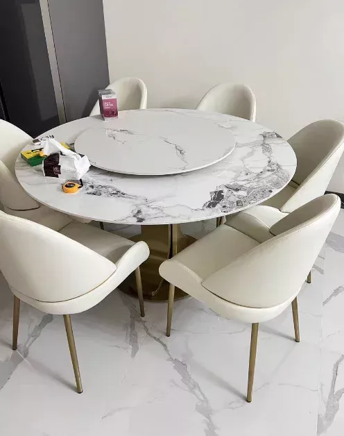 In the world of home furnishings, it's a rare delight to stumble upon an item that not only serves its practical purpose but also elevates the aesthetics of one’s living space to new heights. Such has been my experience with a recent acquisition that I can only describe as a veritable masterpiece of furniture design. This table, with its sleek slate top, has proven itself to be the epitome of durability and elegance. The craftsmanship with which it was created is evidently of the highest caliber, showcasing an attention to detail that is nothing short of remarkable. The inclusion of a turntable feature transforms every meal into an experience reminiscent of dining at a top-tier restaurant, adding a layer of convenience and sophistication that is truly unparalleled. Its design seamlessly integrates into my home decor, embodying a Scandinavian minimalism that is both striking and understated. In a market saturated with options, finding a dining table that stands out for its unique attributes can be a daunting task. However, the Luxury Marble Round Dining Table has been a game-changer for me. The gold stainless steel frame is not merely a structural necessity but a stroke of design genius, adding an air of opulence to my dining room that was previously lacking. The turntable feature is nothing short of revolutionary, transforming every meal into an interactive and enjoyable experience, fostering conversation and connection among guests. It transcends the traditional role of a dining table, becoming a focal point of admiration and discussion. Seating eight comfortably, it has redefined family gatherings, making them more inclusive and engaging. The unmatched quality of this table makes it a highly recommended addition to any home, promising to imbue your space with elegance and functionality. This table has been, without a shadow of a doubt, the best purchase I have made this year, standing as a testament to exquisite design and functionality melding in perfect harmony. Best purchase I've made this year!