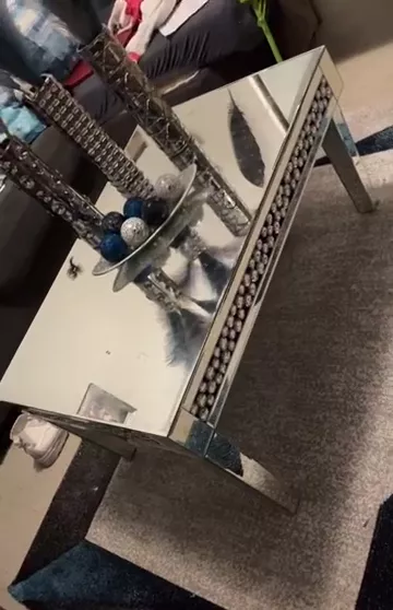 Crafted with the highest quality materials, this coffee table features premium silver mirror glass and a sturdy MDF frame. The table’s surface is adorned with exquisite crystal diamonds that catch and reflect light, creating a captivating sparkle that elevates the atmosphere of any room. Whether placed in a living room, office, or reception area, it promises durability and an enduring appeal.