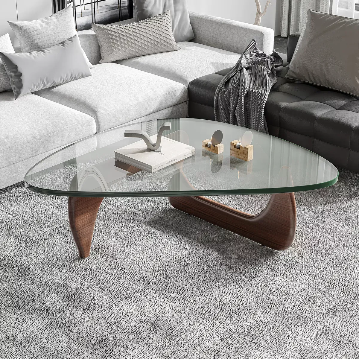 Elevate your home decor with the Mid-Century Glass Triangle Coffee Table, where timeless design meets contemporary flair. Whether you’re enjoying a morning cup of coffee or entertaining guests, this coffee table is the perfect centerpiece for your living space. Embrace sophistication and functionality with every sip and conversation.