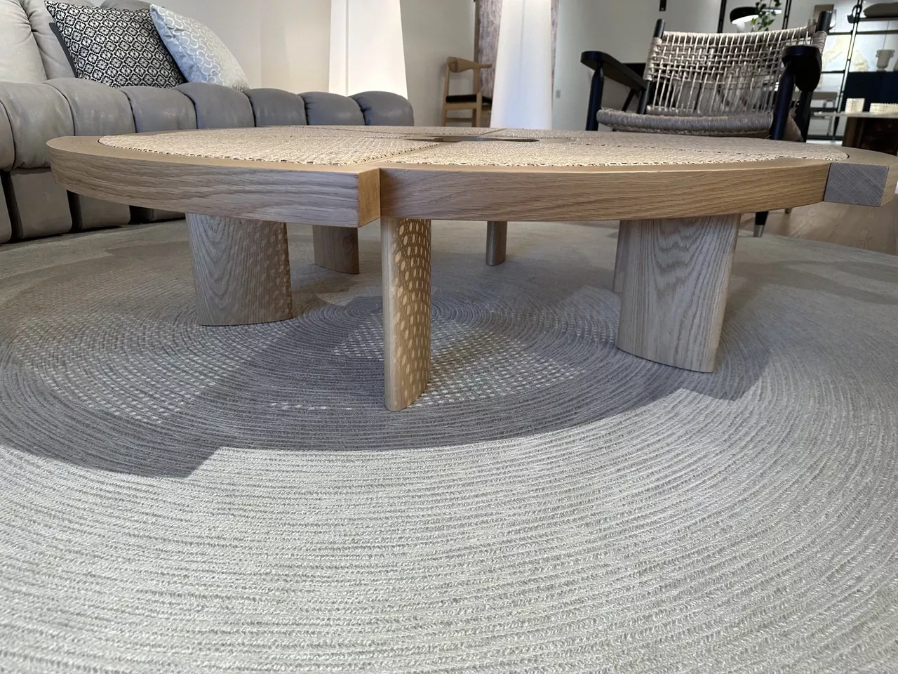 Minimalist Modern Ash Wood Rattan Coffee Table – Round Low Sofa Side Table