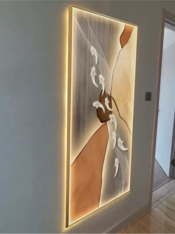 What sets this piece apart is its stunning abstract fish design, which not only serves as a source of light but also as a unique piece of art. The decorative painting paired with LED lighting brings a modern twist to classic wall decor. The lamp’s body is crafted from durable iron with a luxurious gold finish, and the meticulous plating process ensures a long-lasting luster.