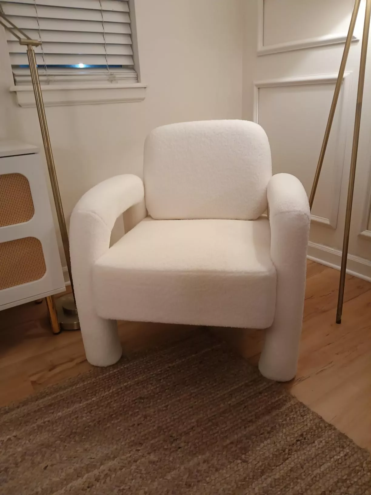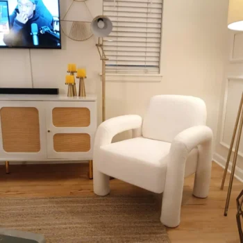 Introducing the perfect blend of comfort and style in your home decor, our Modern Accent Armchair features unique elephant trunk armrests and plush Sherpa upholstery. Designed to enhance any living room, bedroom, or office space, this chair combines modern aesthetics with unparalleled comfort, ensuring it becomes your new favorite spot to unwind.
