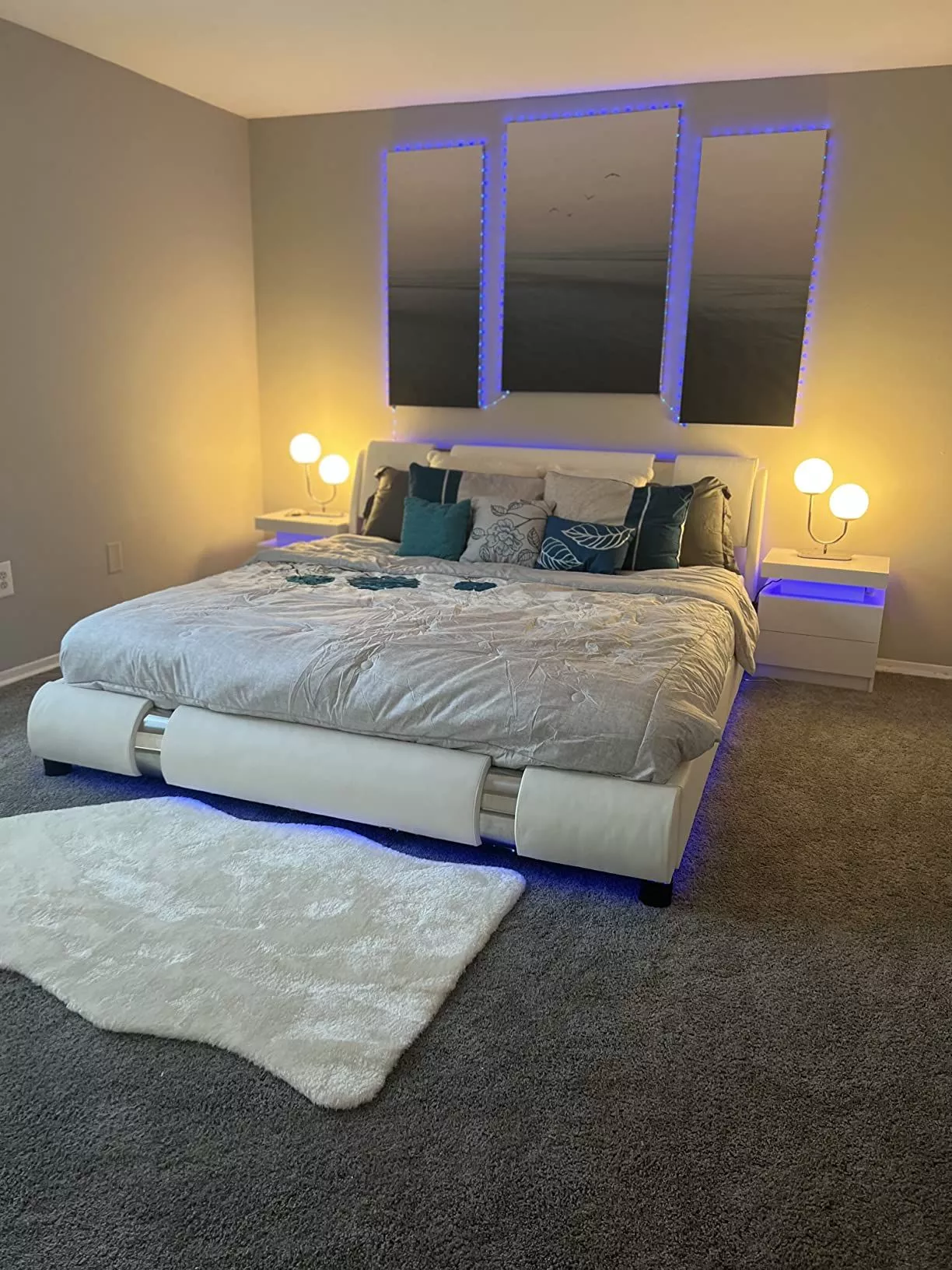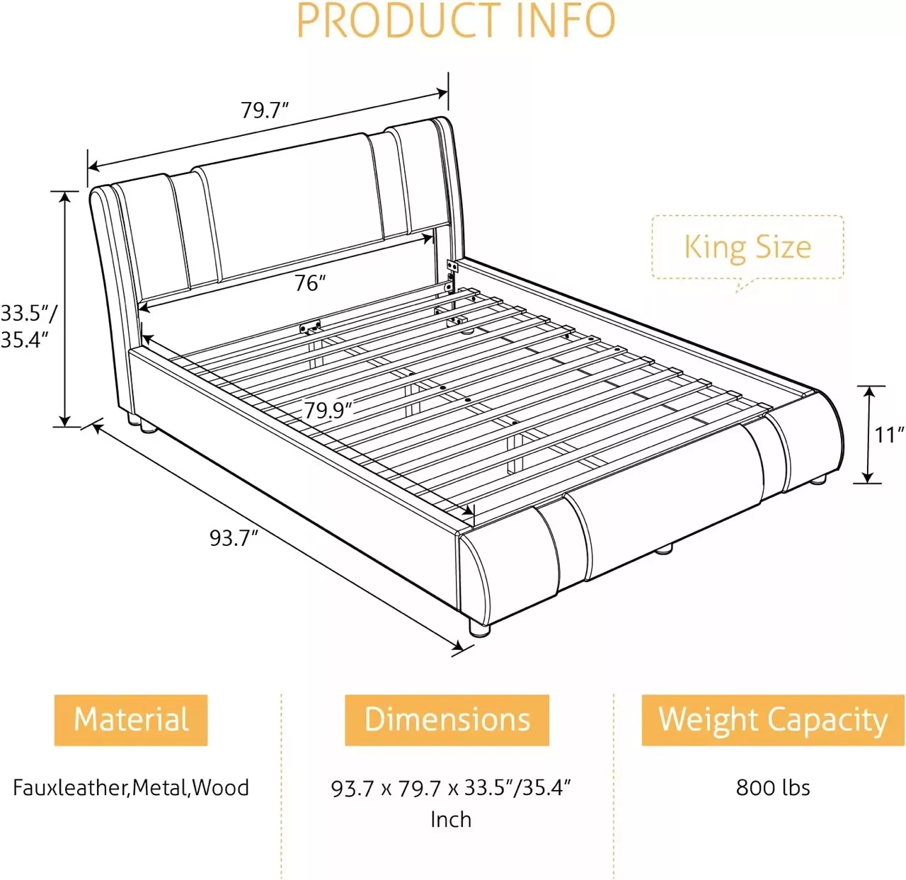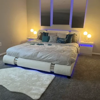 This bed frame is just out this world! You know when you make a purchase and it turns out to be way better than expected? Well, that's what with me and this guy here. First things first, let's talk about how sturdy it is. This isn't some cheap flimsy thing that'll collapse under the slightest pressure. No sir! It’s like the Hulk in bed frame form - strong as an ox and ready to withstand anything you throw at it or on it for that matter! Now onto its style. The design is sleek and modern but not over-the-top flashy either. It adds just the right amount of pizzazz without stealing all the attention from your other furniture pieces. And then there’s the faux leather finish...talk about classy! This little detail takes my bedroom decor up several notches instantly giving off a more sophisticated vibe. Plus, who doesn’t love a bit of faux leather? It screams modern chic without being too pretentious. The best part though has got to be how happy I am with my purchase overall. There hasn't been one moment where I've regretted buying this bad boy or wished for something different instead. In fact, every time I walk into my room now, I can't help but smile seeing how perfect everything looks together thanks to this fabulous addition!