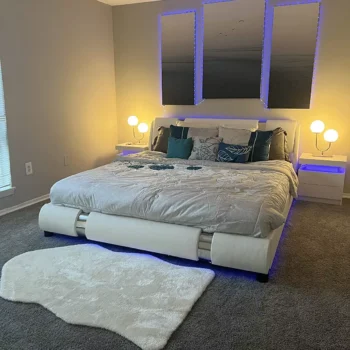 Our Modern Faux Leather Queen Bed Frame is packed with features that set it apart from ordinary beds. Here’s what makes it special: