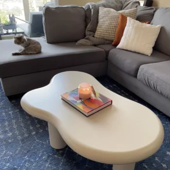Introducing our Modern Minimalist Cloud-Shaped Coffee Table – a perfect blend of style and functionality, designed to elevate the aesthetic of any room. Its unique cloud shape and classic ivory white color make it a captivating centerpiece for your living room, bedroom, or office space. Crafted with a keen eye for detail, this table is more than just a piece of furniture; it’s a statement of elegance and modernity.