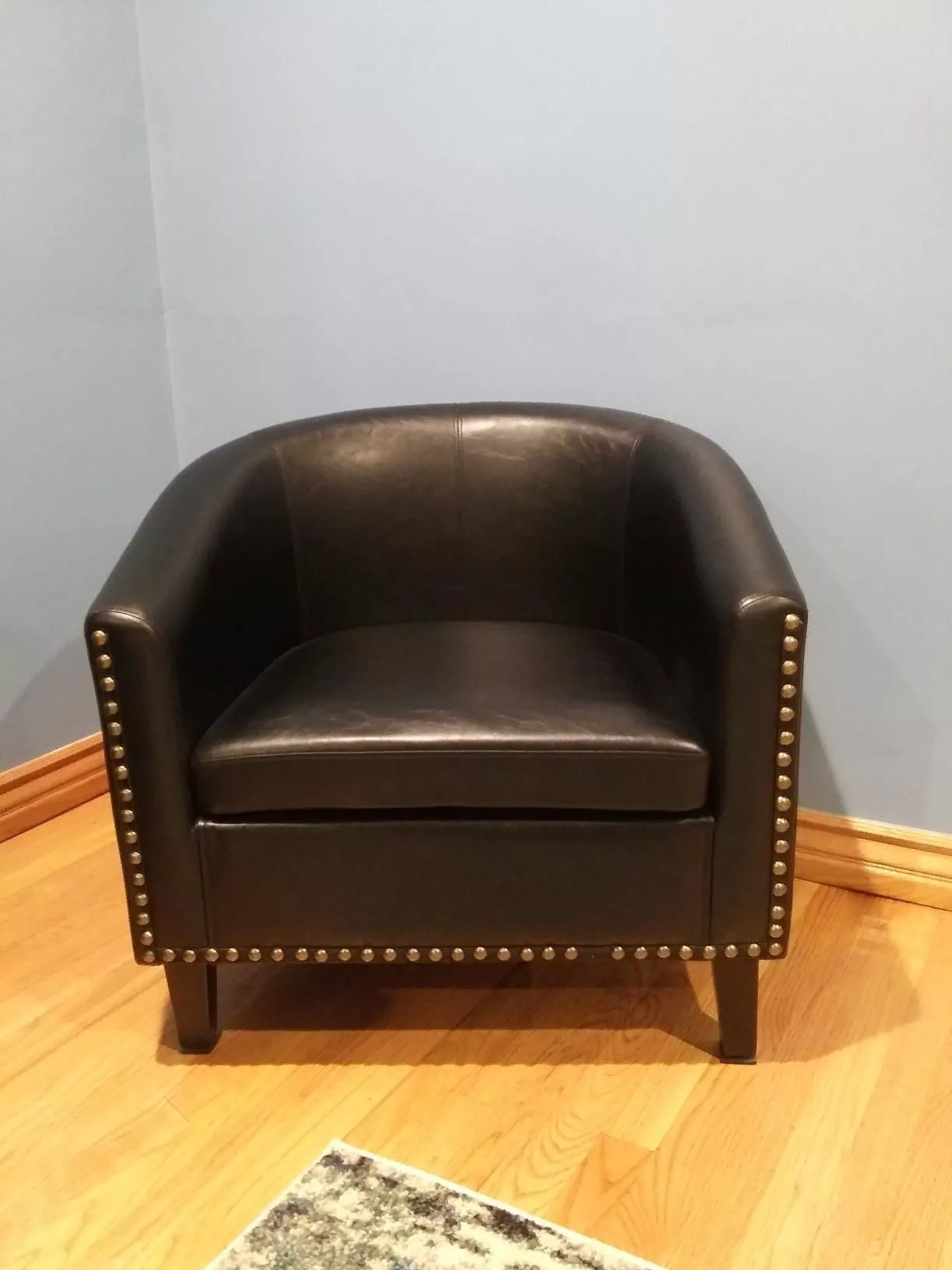 Introducing our Modern Minimalist Faux Leather Barrel Armchair—a perfect blend of elegance and functionality. Crafted to elevate any room, this chair combines a unique barrel design with exquisite detailing, making it a standout piece whether it’s tucked in a cozy corner or showcased prominently in your living space.