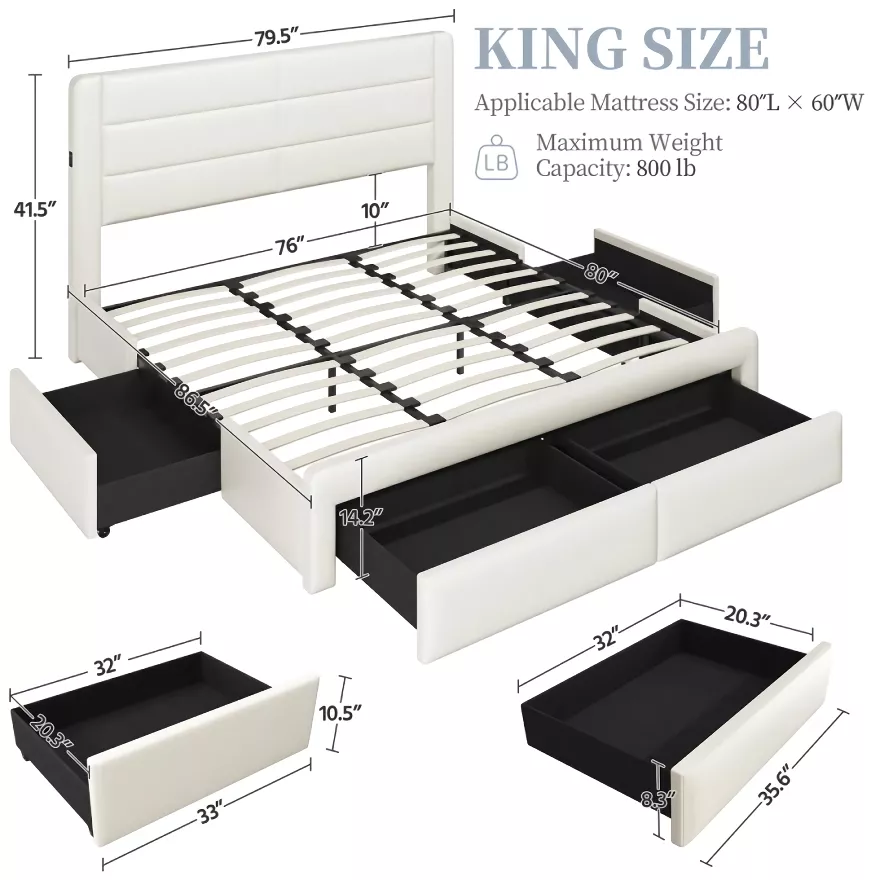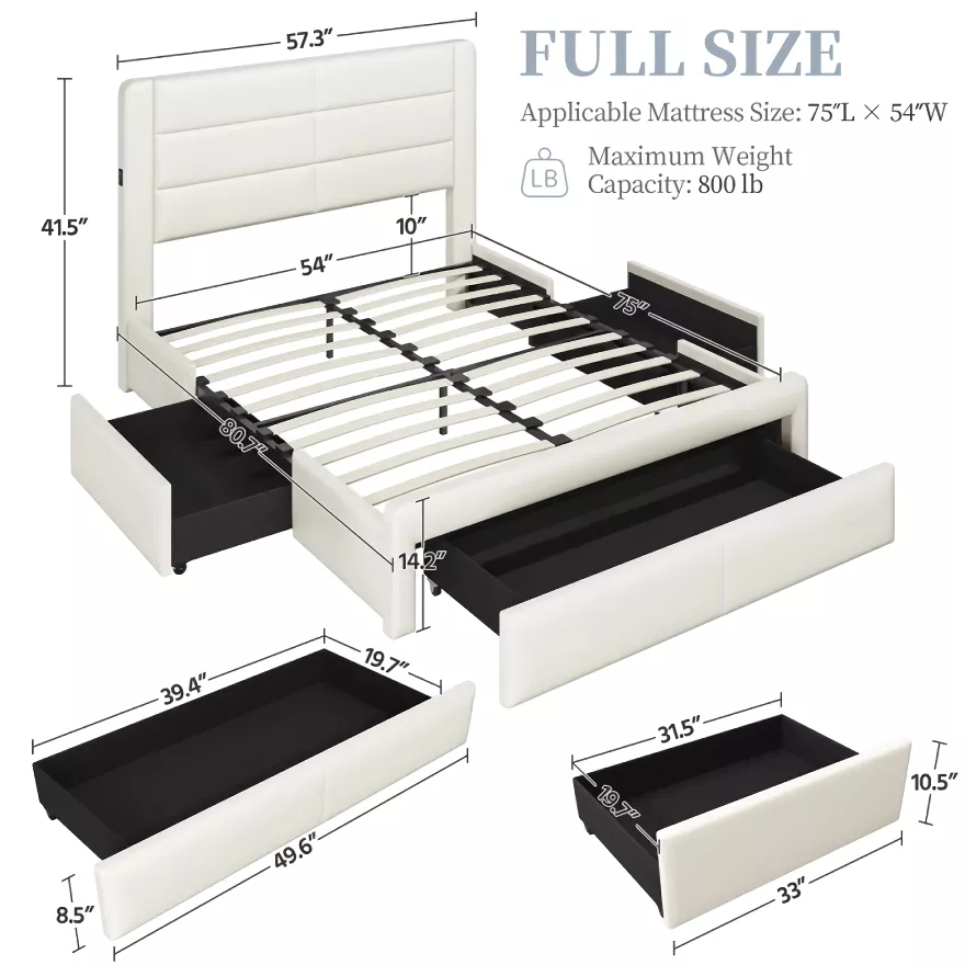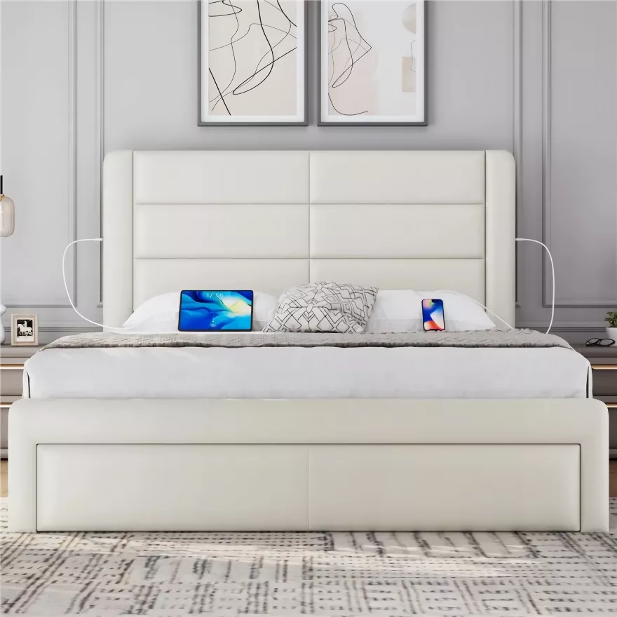 Modern Upholstered Platform Bed with Storage Drawers and USB Ports