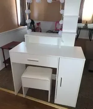This vanity isn’t just a piece of furniture but a statement of style. It’s not only a space to prepare yourself for the day but also an addition that enhances your decor. The sleek, modern design, combined with functional storage and adjustable settings, makes it an indispensable part of your daily routine. Its capability to transform from a full vanity to a straightforward desk is ideal for adapting to your changing needs and spaces.