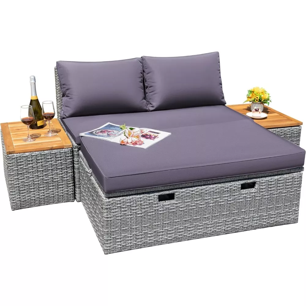 What sets this patio furniture set apart is its combination of style, practicality, and durability. The modern design seamlessly blends with any outdoor decor, while the high-quality materials ensure longevity and easy maintenance. The multifunctional pieces allow you to customize your seating arrangement to suit your needs, making it a versatile addition to your outdoor space. The thoughtful inclusion of storage solutions keeps your area tidy and organized, enhancing your overall outdoor experience.