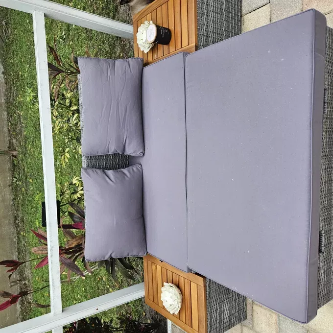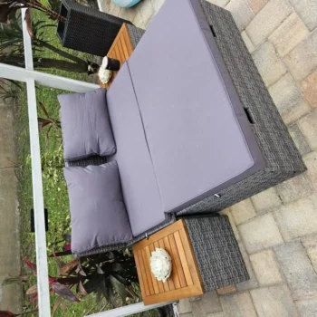 When I first saw this multifunctional outdoor sofa, I was immediately drawn to its design and the promise of added storage. After using it for several months now, I can confidently say that it has exceeded expectations in every way! The comfort level is simply unmatched - whether we're having a casual family barbecue or hosting an evening soiree friends, everyone always compliments how comfortable the seating is. But what truly sets this piece apart from other outdoor furniture is the built-in storage compartment underneath. It's such a simple yet ingenious feature that has made our gatherings so much smoother and more organized. No longer do we have to run back and forth into the house whenever someone needs something; everything we need can be stored right under our seats! Plus, when not in use, all those extra cushions and throws are neatly tucked away out of sight but within easy reach for next time. This sectional sofa isn't just furniture; it’s a solution to enhancing our outdoor living experience.
