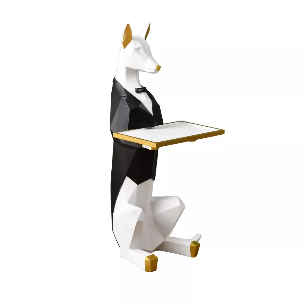 Crafted with meticulous attention to detail, these dog statues are made from high-quality resin, ensuring durability and longevity. The smooth lines and bright texture of the material give the statues a luxurious feel. Each statue features a detachable tray with a strong bearing capacity of up to 6kg, making it perfect for holding a variety of items such as wine glasses, bottles, paper towel boxes, stereos, and flower pots. This practical design not only enhances the aesthetic appeal of your home but also adds functionality to your decor.