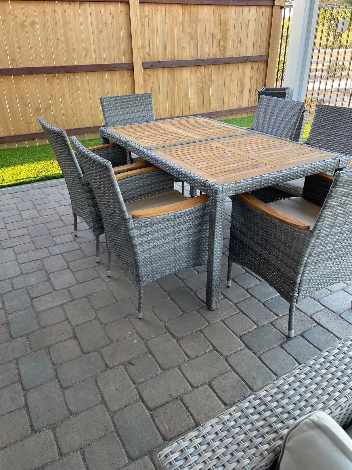 What sets our outdoor dining set apart is its combination of style, comfort, and durability. The all-weather PE rattan wicker construction ensures that this set can withstand the elements, while the acacia wood tabletop adds a touch of sophistication to your outdoor space. With comfortable seating and ample space for entertaining, our set is designed to enhance your outdoor living experience.