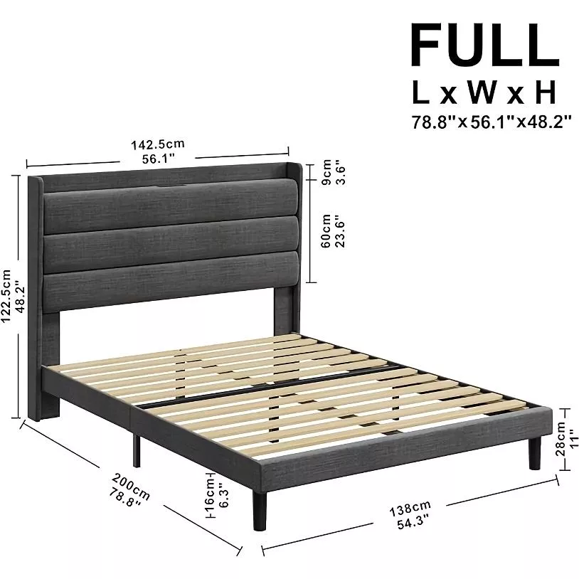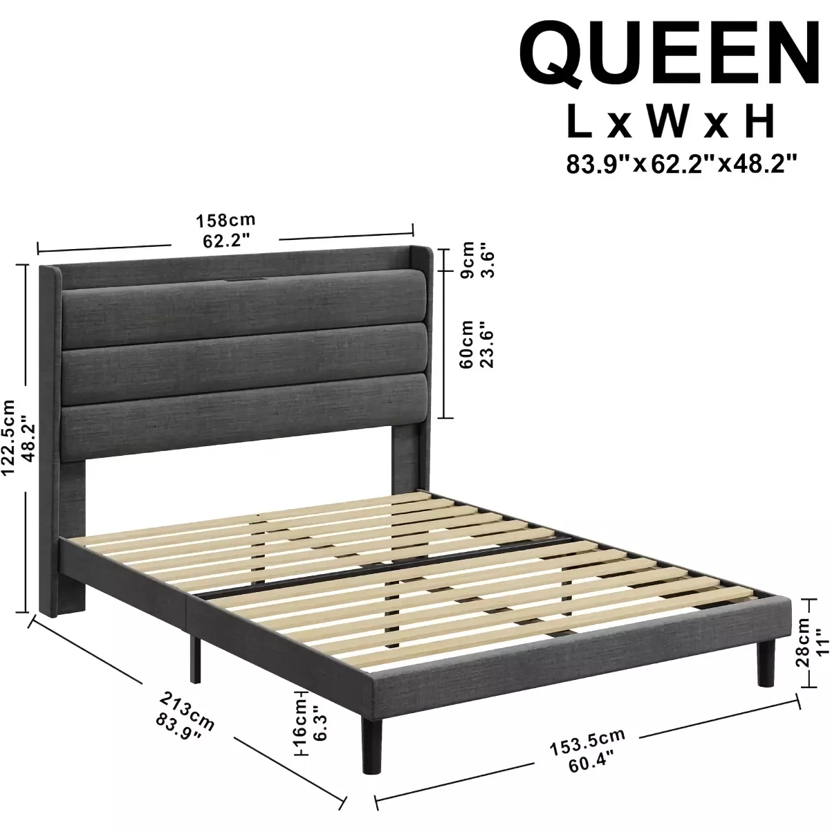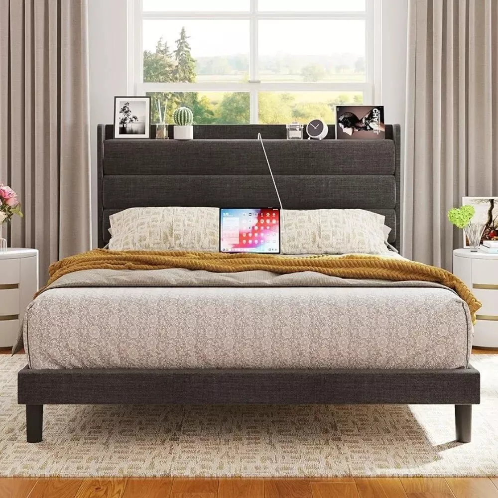 This queen size bed frame is not just a piece of furniture, but a multi-functional haven designed for the modern lifestyle. The built-in outlets in the headboard allow you to conveniently charge devices overnight, making it perfect for today’s tech-savvy individual. The additional storage space is ideal for keeping nighttime essentials at hand, reducing clutter and enhancing your peace of mind.