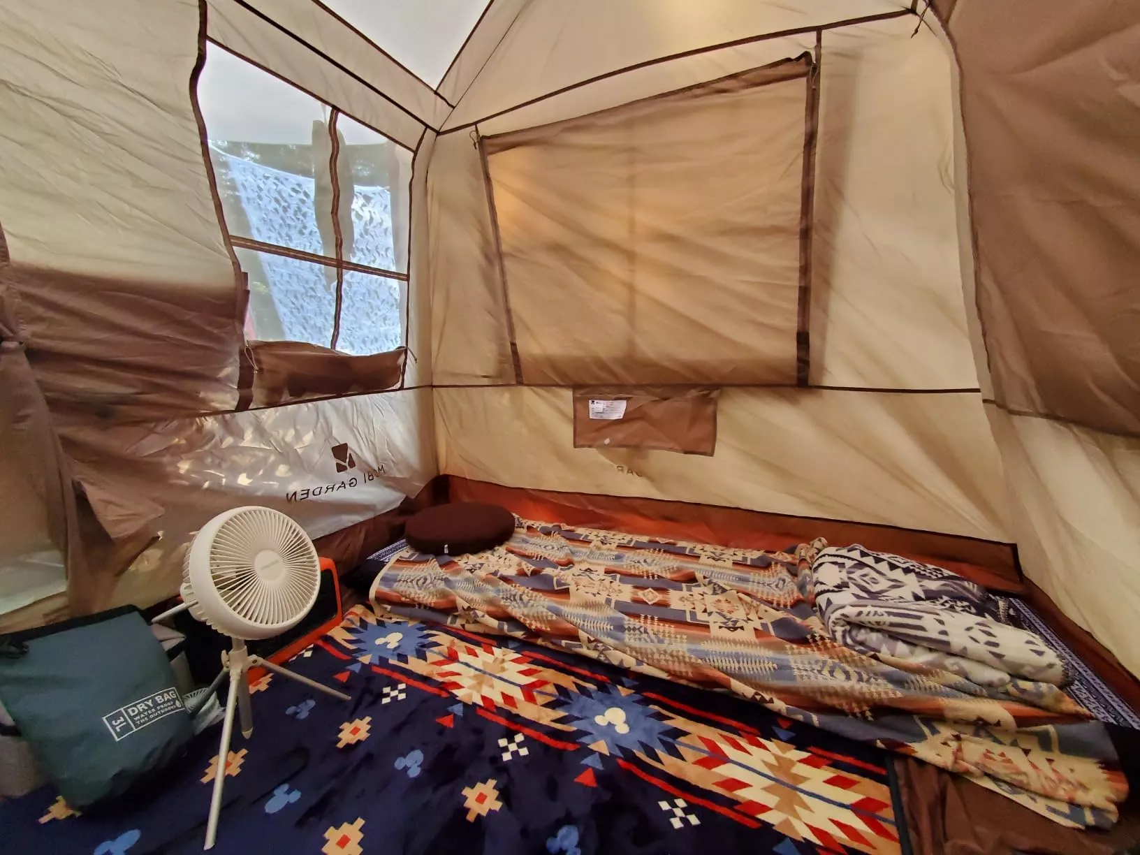 The tent’s frame is built with aviation aluminum brackets and iron hall rods, providing robust support and stability. The package includes 14 fluorescent head iron ground nails and 6 wind ropes to secure the tent firmly to the ground, even in windy conditions. This ensures that your tent remains stable and safe throughout your camping trip.