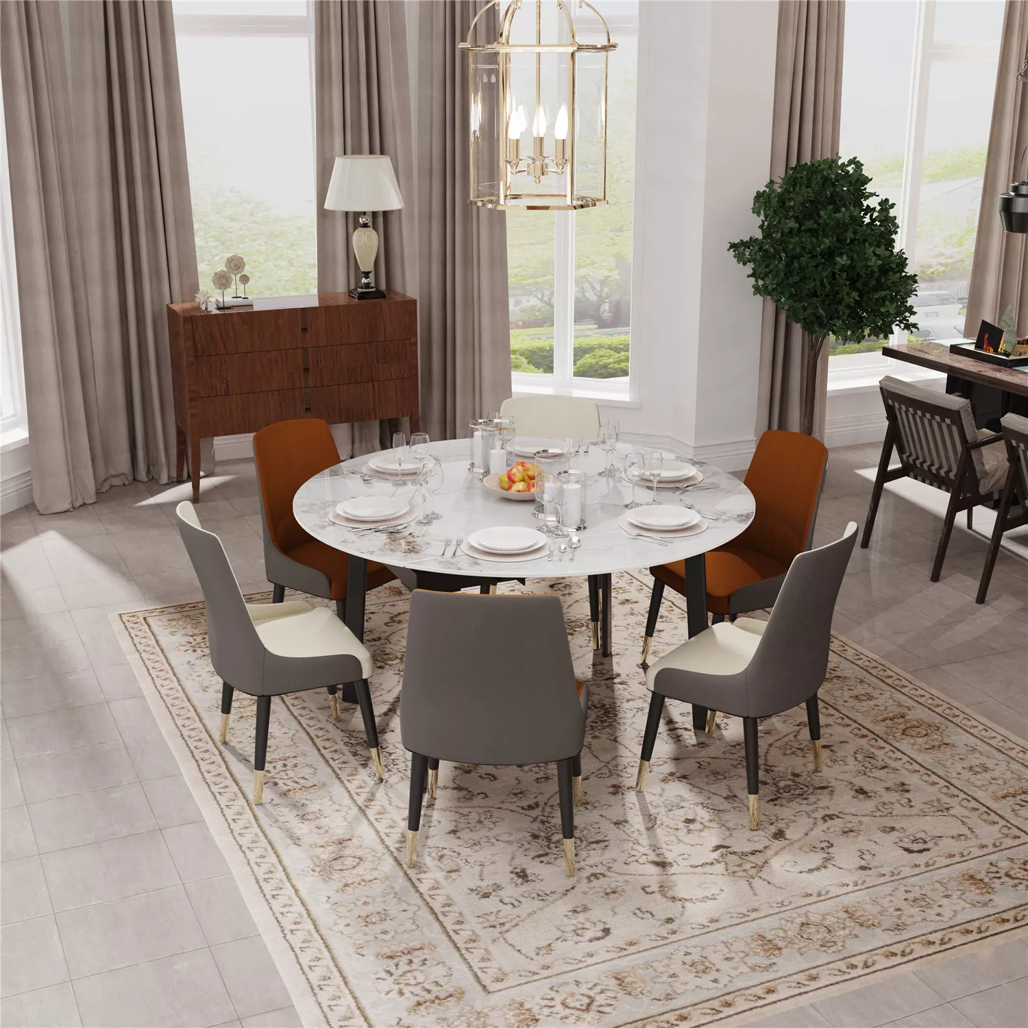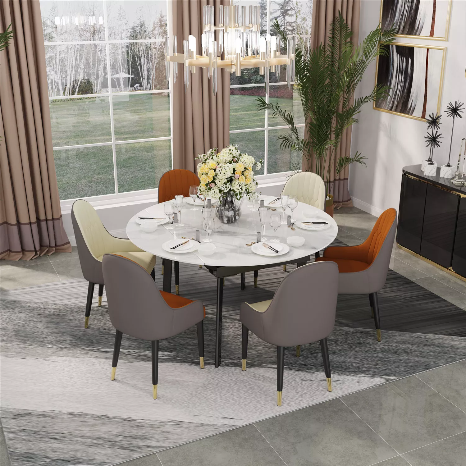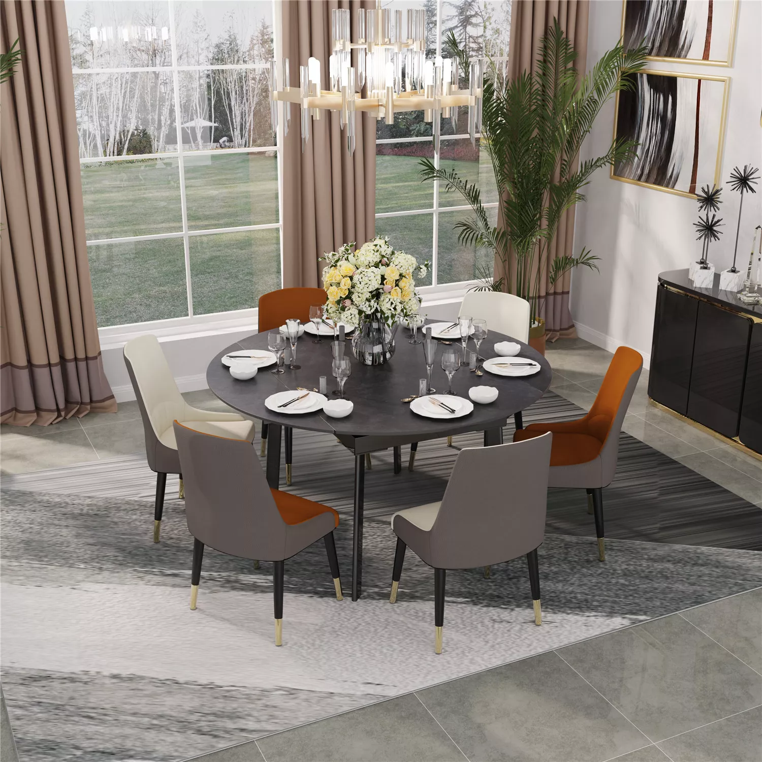 Transform your dining space into a stylish and functional area with our Round Extendable Sintered Stone Dining Table Set. Experience the perfect combination of elegance and versatility for memorable dining moments.