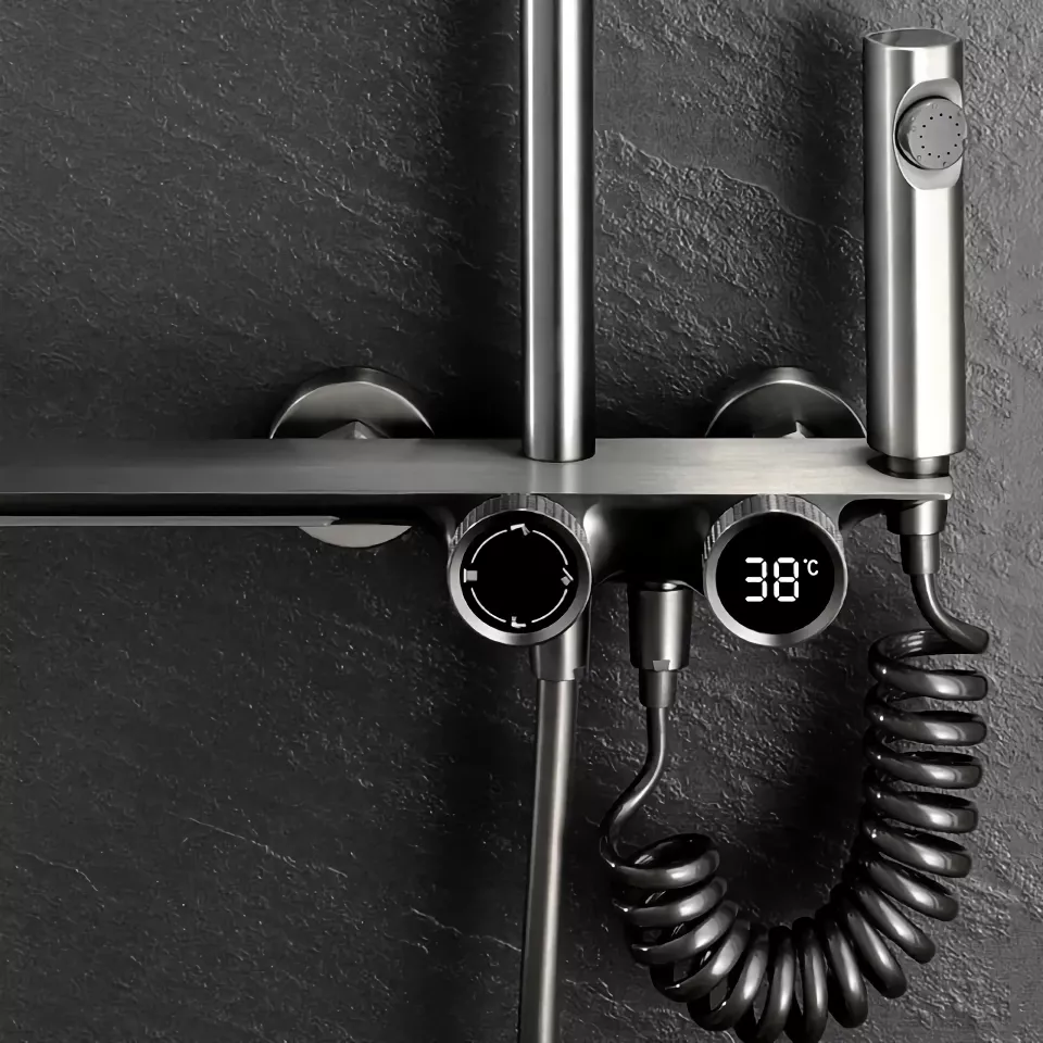 Gray Digital Display Shower System with Ambient Light