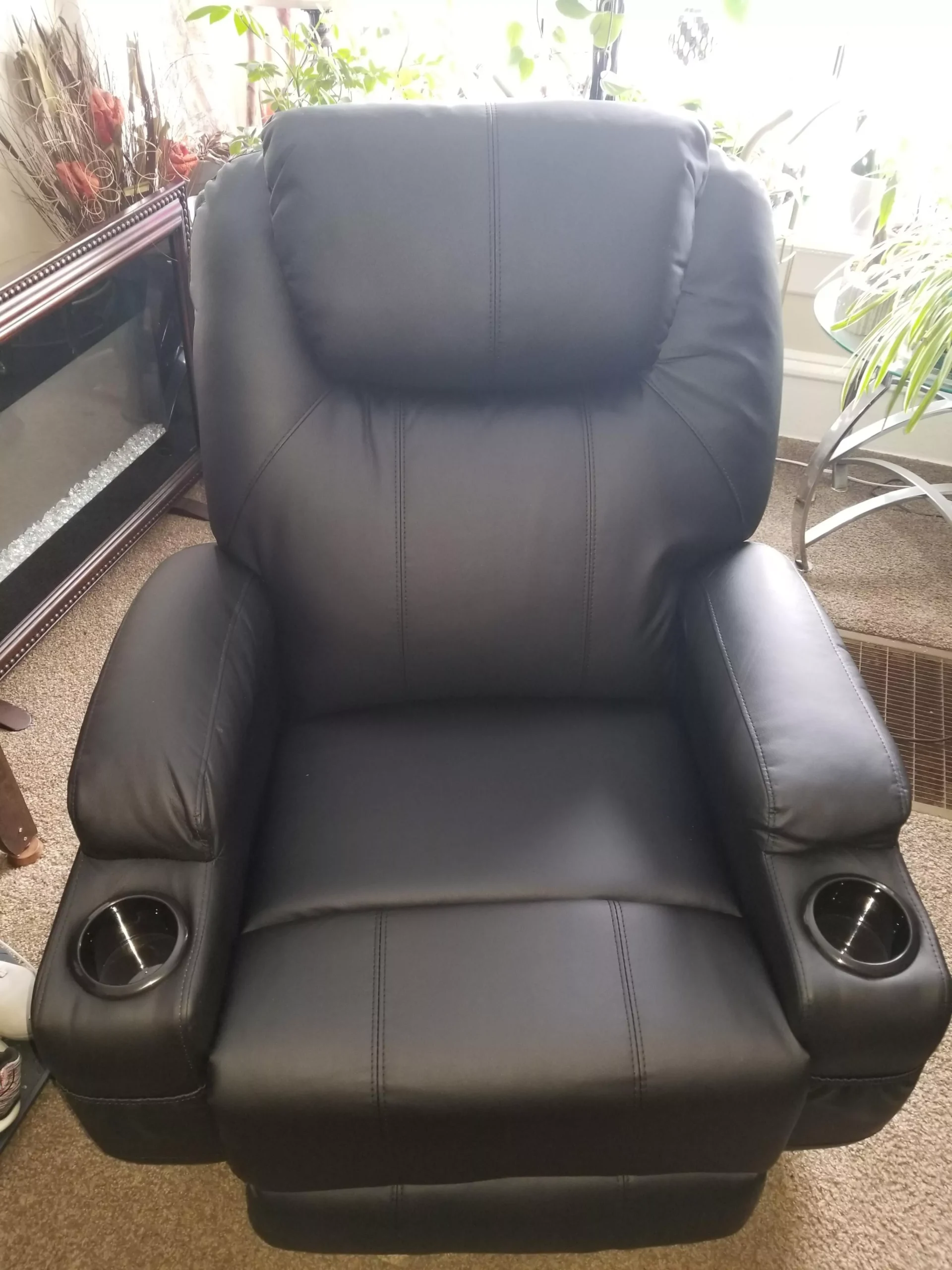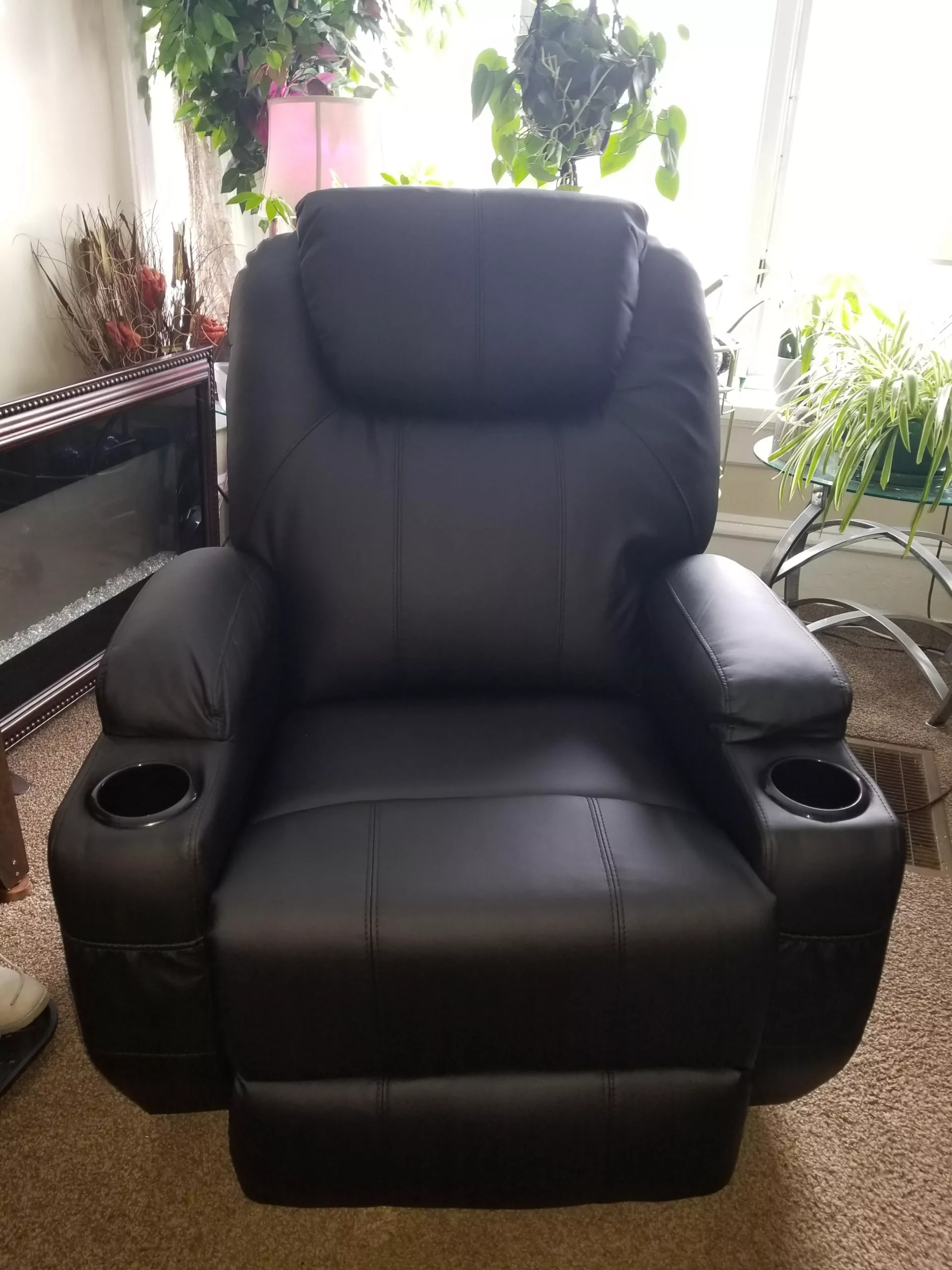 Man, let me tell you about this recliner. It's like stepping into a slice of heaven every time I sink down into it. You know that feeling when you've had a long day and all you want to do is kick back and relax? This totally gets it! First off, the massage function on this bad boy is unreal. It doesn't just vibrate like some cheap knock-off; no sir, it actually kneads your muscles in a way that would make any professionaluse green with envy. And the best part? You can adjust the intensity to suit your needs - whether you're after gentle relaxation or deep tissue relief. But wait, there's more! The heating feature on this thing takes coziness to another level altogether. Imagine sitting in your favorite spot during those cold winter nights with warmth radiating from beneath you... yeah, that’s what I'm talking about! It's like having an invisible blanket wrapped around you at all times. And don’t even get me started on how comfortable this recliner itself is – plush enough to feel luxurious but firm enough for support where needed. Every inch of it screams "sit here and forget about life for a while". Plus, who wouldn't love being able to lean back at just the right angle without straining their neck or back? So if anyone ever asks me why I’m so obsessed with my new piece of furniture – well now they know! Absolutely loving every moment spent in my personal spa-like haven at home thanks to this game-changing recliner.