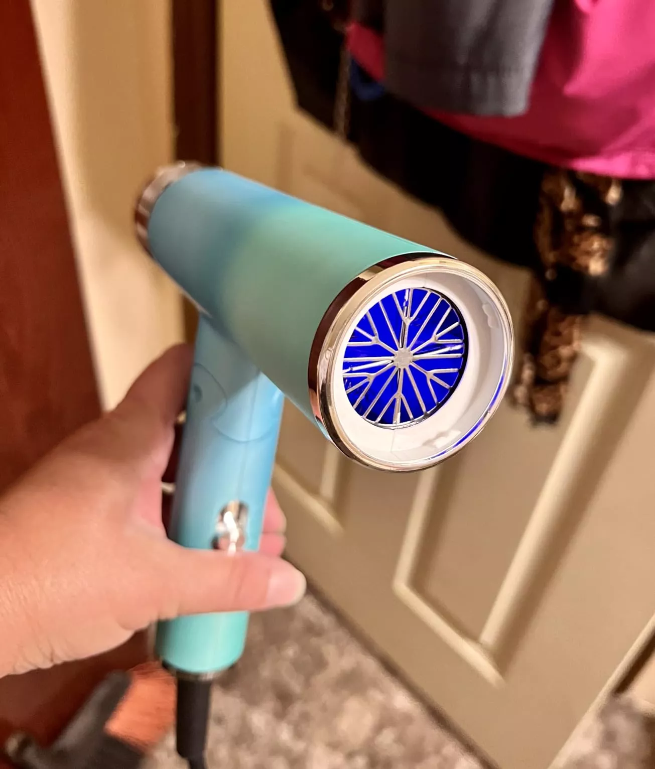 This hair dryer isn’t just about looks. It’s packed with features to keep your hair healthy and looking its best. The negative ion technology works miracles on your hair, moisturizing and repairing damage, resulting in softer, smoother locks. Switch effortlessly between hot and cold air with a simple power switch adjustment, allowing you to dry and style with precision.