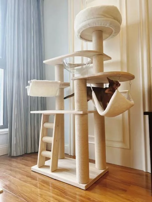 Our cat tower is ideal for indoor use, providing your cat with a playground that can be accessed any time of the day. It is perfect for homes with limited outdoor space or for keeping your cat safely entertained indoors.